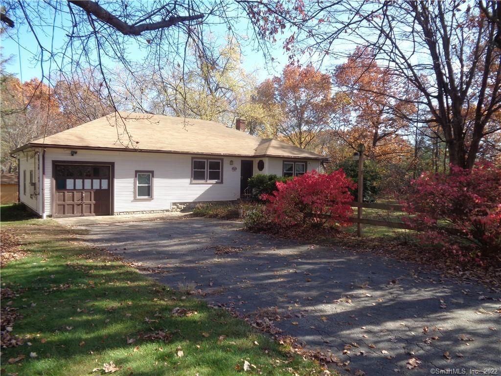 Do you love nature, or the pretty and less populated part of Waterbury, near Wolcott? This home offers almost 1.5 acres of quiet enjoyment, but it's also convenient to shopping, restaurants, and places of worship. It features 3 or possibly 4 bedrooms, 1 bath, a bright heated sunroom with a skylight leading to a back deck, an office/possible 4th bedroom with built-in bookshelves & a desk, a 1 car garage, and lots of storage in the partially finished basement which is fully heated and has built in shelves. The main level of the home has most of the rooms (with mostly hardwood flooring, no carpet) and is heated by radiant floor heat (fueled by oil). On the main level, only the sunroom is heated by electric baseboard heat. The landing level, just a few steps below the main level, has an open space, the 3rd bedroom, the possible 4th bedroom/office, and the laundry closet (heat on this level is electric). The basement has a main room, a workshop/tool room and an oil tank/storage room (with 2 oil tanks) all heated by radiant floor heat, fueled by oil (also the main basement room has a wood stove). An estimated 80% of the heat in the home is radiant floor heat, fueled by oil. This sale is subject to probate court approval; realtor is related to seller.