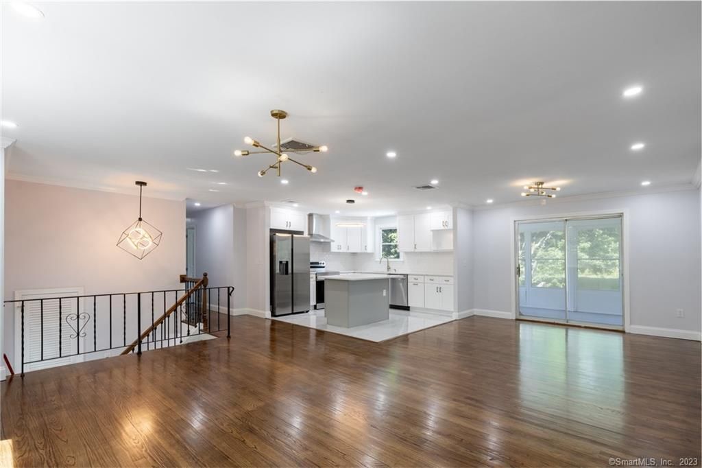 Welcome home! This large, move-in ready raised ranch is situated on a quiet street in the desirable Mount Carmel area of Hamden. Just minutes away from Quinnipiac University, Brooksvale Park, Sleeping Giant Golf Course, major highways, and much more. This property has been diligently renovated from the studs out: 30 year roof and gutters (2020), automatic garage doors (2020), fully renovated kitchen (2022), three fully renovated bathrooms (2022), energy-efficient windows throughout (2022), refinished hardwood floors on the main level (2022), painted throughout, new lighting fixtures/recessed lighting, and much more! On the main level you'll find a large open floor plan - perfect for entertaining! Custom kitchen includes brand-new stainless steel appliances, quartz countertops, and a massive island. The primary bedroom with en suite and walk-in closet is on the main level, along with two additional spacious bedrooms. A screened-in porch and deck goes off the kitchen to overlook a beautiful semi-wooded yard. Downstairs you'll find a cozy family room with a fireplace, three more bedrooms, and a full bath. A kitchen can be added downstairs if an in-law scenario is desired (plumbing/electric was installed in the walls to accommodate). The lower level has a private entrance into the yard and its own HVAC zone. Spacious, two-car garage has automatic doors and can be accessed from the lower level.