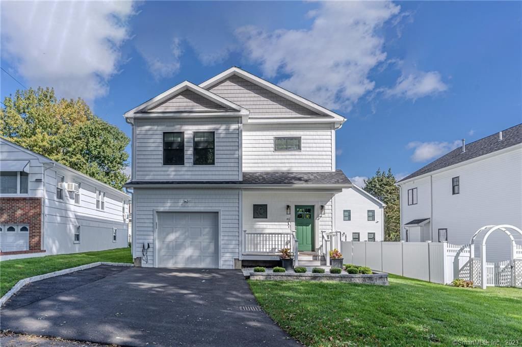 Welcome to 46 Pope Street, a stunning modern single-family home built in 2021, located in the heart of Fairfield, Connecticut, a vibrant community known for being home to prestigious Sacred Heart University and Fairfield University. This exquisite residence boasts 7 rooms, including 4 bedrooms, and 2.5 baths. With a total living space of 2,867 square feet, this newly constructed home offers a harmonious blend of contemporary design and comfortable living. The first floor welcomes you with an open floor plan, featuring 9-foot ceilings that create an airy and spacious atmosphere. The gourmet eat-in kitchen is a culinary enthusiast's dream, complete with a large island, custom cabinets, quartz countertops, a convenient pantry, and high-end stainless steel appliances. French doors lead from the elegant living room to a charming patio.The main level also features a practical mudroom and a tastefully designed powder room. Upstairs, the second floor showcases 4 generously sized bedrooms, each offering ample space and abundant natural light. The luxurious master suite is a true retreat, featuring a walk-in closet and an opulent master bathroom complete with dual vanities and an oversized shower. This home offers a fully finished basement with heating and air conditioning, providing extra versatile space for your needs.