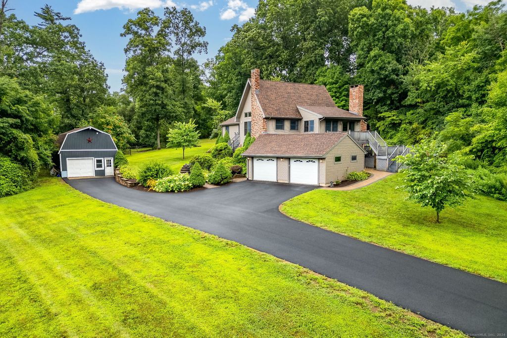 Welcome to your dream home! Nestled on 1.75 picturesque acres, this stunning 4-bedroom, 3-bathroom hi-ranch offers a perfect blend of comfort, style, and space. As you step inside, you'll be greeted by a spacious open floor plan that seamlessly connects the living, kitchen, and dining areas. The living room features large windows that flood the space with natural light, highlighting architectural beauty and a cozy fieldstone fireplace. The modern kitchen is a chef's delight, boasting Viking steel appliances, granite countertops, and ample cabinet space. Primary bedroom suite is complete with new upgrades throughout while the additional two bedrooms are generously sized and share a well-appointed, upgraded full bathroom. The lower level in-law suite is a true treat, complete with a bedroom, upgraded bathroom, private entrance, and living room. Among the many bonuses found in this home, an upper level loft area flex space is perfect for working from home, or a playroom. Outside, you'll find plenty of room to roam and entertain. The expansive backyard is perfect for family gatherings, barbecues, or simply enjoying the serene surroundings during poolside fun. A third car can even be garaged in the beautiful, oversized barn, which is complete with an abundance of storage space. Located in a peaceful neighborhood yet close to schools, shopping, and dining, this home offers the best of both worlds. Don't miss the opportunity to make this your forever home.
