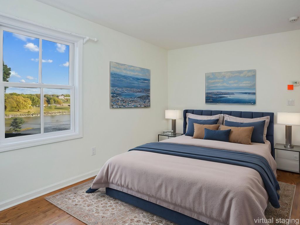 1st house on Belle Haven peninsula offers bucolic commuter convenience in a most sought-after enclave overlooking Greenwich Harbor. Positioned atop slope with outstanding Harbor views, this 5 bed, 3 full & two half bathroom residence spans 3,598 sqft. Cleverly renovated to maximize water views with upgraded systems & interior improvements, this home marries smart functional privacy with today's luxury expectations. Amplifying exceptional waterside position, house's Great Room/kitchen features wall of glass opening to comfortable balcony showcasing morning sunrise. Nature can be fully embraced from center island seating six. Light-filled living room with wood-burning fireplace maximizes entertaining ease. DR has adjoining butler's pantry with second dishwasher, sink & warming drawer. Powder room adjacent. Sliding glass doors open to the spacious level backyard featuring flowering tree & side yards. Lower level can live as a stand-alone apartment featuring antique mahogany entry door with Parisian hardware. Adjoining main room space (can be a separate office) is large bedroom with double closets. Stone tile bathroom. Upstairs primary suite as well as another bedroom. A second upstairs level features two more large light-filled bedrooms each with double closets. Double sink bath with separate area shower/toilet/tub & sizable; study overlooking harbor. Laundry room & pantry. Attached two car garage; stone walls and botanical plantings. .62 acre. 4 minute walk to train.