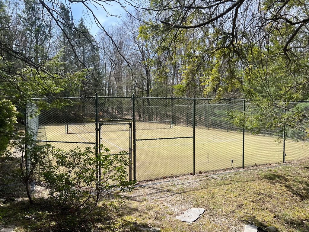 A private gated road leads to this elegant shingle-style estate on 20+ secluded acres in the beautiful Litchfield Hills with spectacular views that go on for miles. This property includes a four bedroom, five and a half bath main residence, in ground heated Gunite pool, tennis court, one-bedroom caretaker's apartment over a 3-bay garage, two bedroom guest apartment and greenhouse. This compound offers an intriguing mix of elegant sophistication and quiet country road living. Highlighted by judges paneling, the large two-story main foyer is breathtaking. An evening soiree for a large gathering of guests is easily achieved in the public rooms. Both rooms offer a touch of grandeur with extra tall ceilings, tall windows and exquisite detailed moldings. The formal dining room is generous in size with tall windows. The home also offers an array of comfortable spaces for intimate gatherings. The delightful and sunny great room includes the updated kitchen with dining, sitting area with fireplace bordered by floor to ceiling bookshelves and French door that leads to the deck overlooking the magnificent view. There is a family room with fireplace, rec room and full bath in the walk-out lower level. The main floor primary suite is extra special with a fireplace, French doors to brick terrace, and full bath with sauna. The three additional bedrooms, all with full baths, are nicely sized. Special in every way and just 90 minutes from NYC.