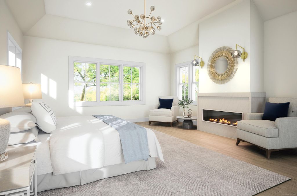 Perched high on a hill in downtown Greenwich, 66 Dearfield is unparalleled in its grandeur with 10,646 square feet of luxury living spanning 4 floors. Walk to Greenwich Library, Greenwich Avenue, the train and all downtown amenities. This exquisite colonial boasts stone chimneys with extra height ceilings on each floor. Upon entry, the 2 story foyer nestled between the living room and dining room unfolds into a stunning layout featuring expansive family room with fireplace, divine dinette adjacent to chef's kitchen accented by 2 islands containing Wolfe and Sub Zero appliances connected to an elegant butler's pantry/bar; first floor spacious bedroom with ensuite bath and magnificent library conclude the first floor. Extraordinary primary suite hosts his and her baths, fireplace, 2 story closets, sitting room and an outdoor deck; upstairs laundry and 5 additional bedrooms with ensuite baths round out the second floor. Garden level highlights include media room, gym, wine room, guest bedroom with ensuite bath, 2nd laundry room with pet shower, as well as multiple flex and play areas with walk out access to level backyard. Top level details include wet bar, recreation spaces and his and her offices. Indoor/outdoor experience is complete with oversize stone patio opening to 20' x 40' salt water pool. Own this unique property to be finished by year end 2025. Customization possible.