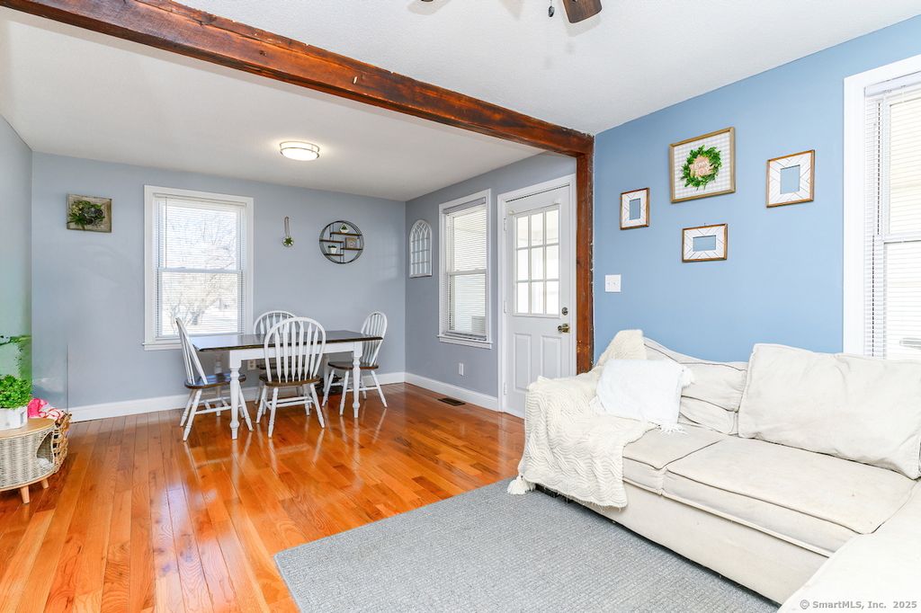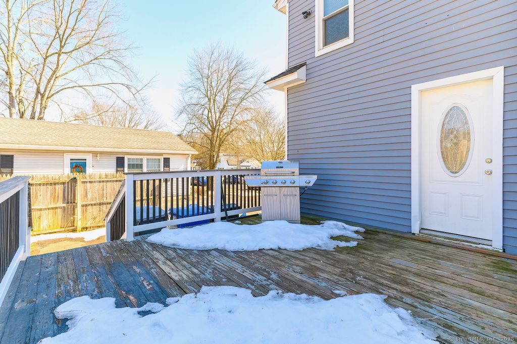 Centrally located and just minutes from I84 is this turn-key home that's ready for your move. The updated kitchen features granite counters, a subway tile backsplash, stainless steel appliances, hardwood flooring and recessed lighting. The rear deck off the kitchen is perfectly situated for entertaining, relaxing and grilling. The living room and dining area are appointed with hardwood flooring, recessed lighting and an electric fireplace. Just off the living room is the sunporch where you'll find the laundry area. Three bedrooms on the 2nd level have been upgraded with new flooring. The home also features newer thermopane windows, gas heat and central air. The shed provides additional storage and has power. Schedule your private tour today!