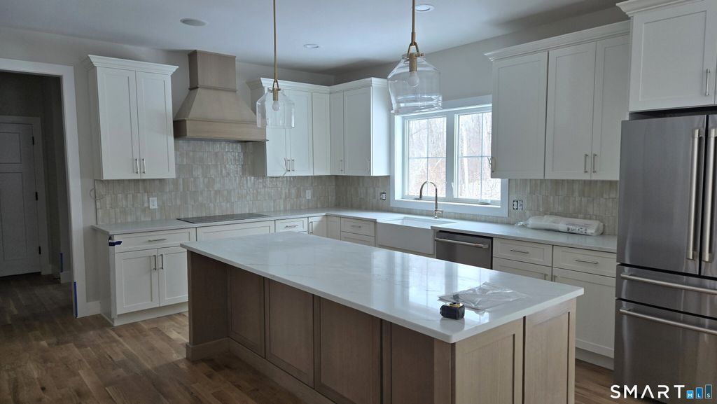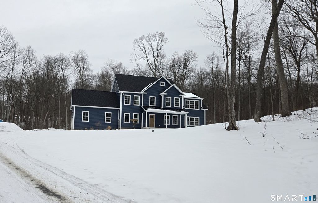 New construction, custom-built Farmhouse Colonial by reputable GRC Construction, available for January delivery. Set well back from the road at the end of a cul-de-sac, this spectacular home offers exceptional privacy and a tranquil, wooded setting. Enjoy relaxing on the welcoming Trex front porch or back deck overlooking exceptional wooded acreage to unplug from your busy day! The interior features an open-concept main level anchored by a spacious eat-in kitchen with walk-in pantry, shaker cabinetry, beverage center, and oversized center island. The kitchen flows seamlessly into a large family room highlighted by a propane fireplace and soaring ceilings. A formal dining room, front foyer, and private office/study complete the first floor. Upstairs, the primary bedroom suite offers a generous walk-in closet, spa-like bath with a walk-in tiled shower, soaking tub, and double vanity. Three additional well-sized bedrooms with walk-in closets, a full luxurious bath, and a dedicated laundry room complete the second level. The home also provides excellent expansion potential unfinished space over garage and with a full walk-up attic on 3rd Level featuring a full-length dormer, offering the opportunity to finish over 900 additional square feet.