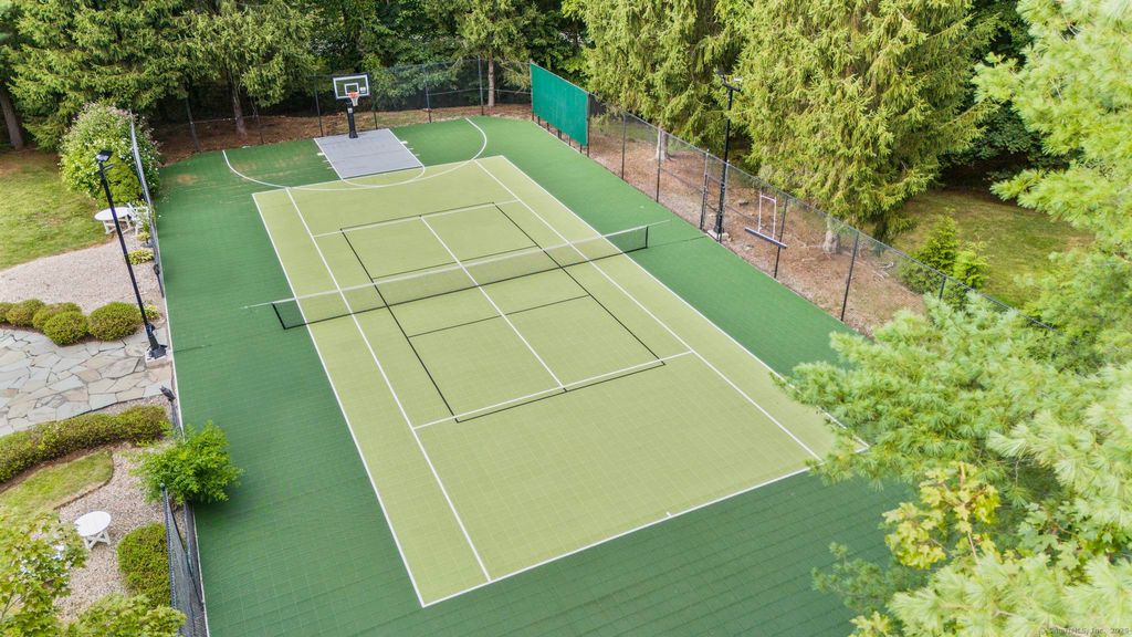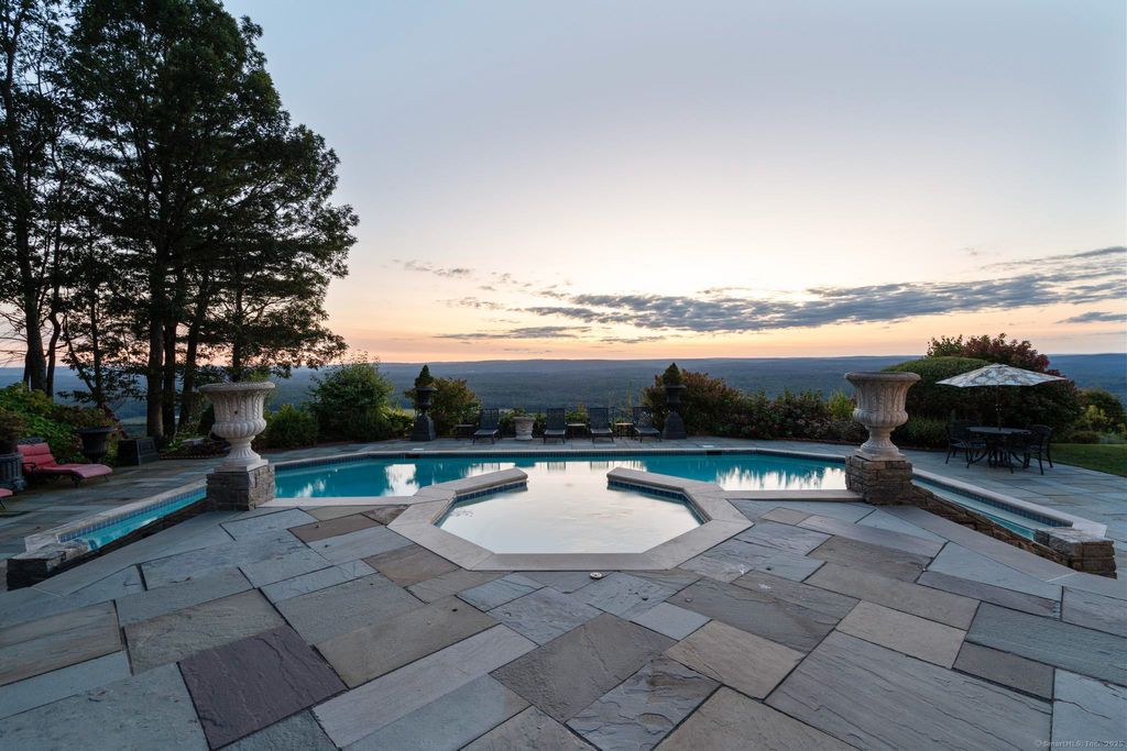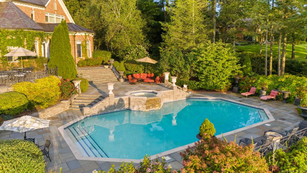 Luxury at its finest - Views, Privacy & Prominence in this prestigious European inspired gated estate anchoring this sought after cul-de-sac community. Timeless elegance abounds inside & out starting w/3.9ac of pristine landscaping including lush gardens, covered verandas, terraces, heated pool w/spa & waterfall, gazebo, tennis court & 4+ car garage w/room for lifts, for a true car enthusiast! Guests are greeted w/a grand 2-story reception hall lined w/Limestone flrs, columns & sweeping staircase luring you into inspiring 12rm/10,990sqft flawless living. Each ample room offers abundant natural light, soaring ceilings & effortless flow. Gourmet Kitchen w/high-end appliances, brand new butler's pantry & a quiet dining area w/breathtaking views. Formal dining w/French doors showcasing stunning views, living room w/interior balcony & elegant fireplace. Family room w/fireplace, French doors overlooking the Farmington Valley & custom built-ins. Masterful cherry library w/custom built-in's, wet bar & fireplace. 1s t flr suite captures the true meaning of a retreat w/its double door entry, captivating views, sitting area w/fireplace, private terrace, dressing room & a luxurious marble spa bath w/jetted tub, glass shower, extensive vanity & privacy doors. 2nd flr retreat hosts 4 En-Suite bedrooms all w/walk-in closets & stunning views! Exercise room, media room w/mini kitchen & wet bar! Finished lower level w/additional sqft offers game room, maids-quarters.$550,000+ in updates (2024)