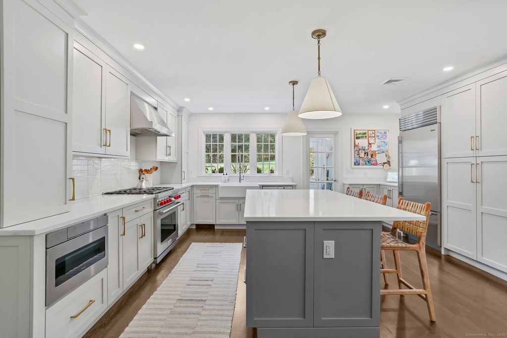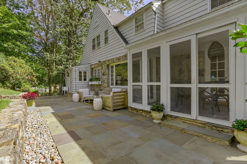 Nestled on one of Rowayton's most desirable streets, 20 Indian Spring Rd stands on 0.8 acres, exuding charm and sophistication. This impeccably maintained home, built in 1940, blends old-world elegance with modern amenities. Inside, discover a stunningly renovated kitchen by nuKitchen, all-new bathrooms and updated mudroom, offering a turnkey experience in the heart of Rowayton. The main level features an inviting entry with a powder room, a spacious living room with 1 of the home's 3 fireplaces, a cozy den, and an impressive dining room that flows from the updated kitchen. A screened sun-porch offers views of the flagstone patio and lush backyard. Upstairs, the spacious primary bedroom includes a fireplace, complemented by two additional bedrooms. The lower level boasts a 4th en-suite bedroom, expansive family space, and a mudroom leading to a two-car garage. The vast backyard is ideal for outdoor entertaining. Just minutes from Rowayton's vibrant amenities, this home marries elegance with modern living.