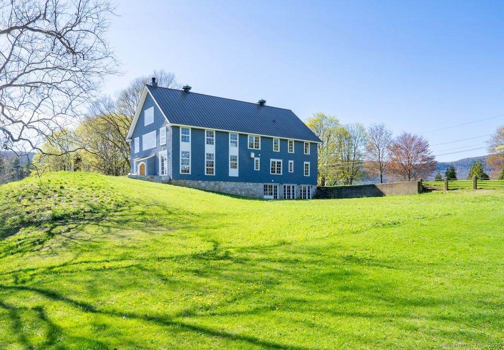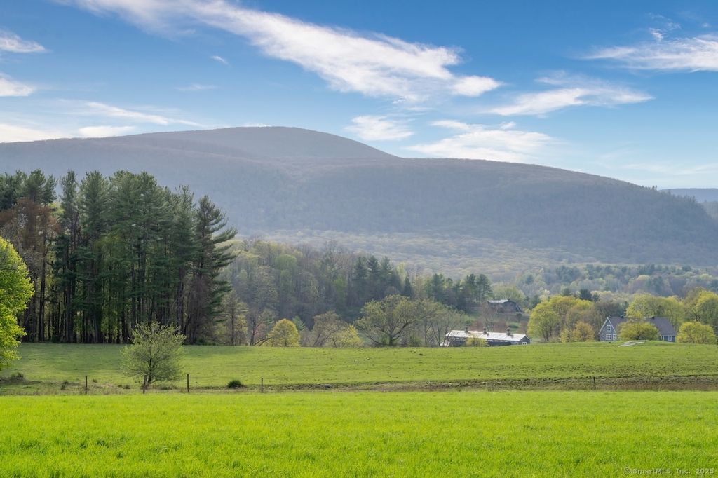 The post-and-beam residence showcases soaring ceilings and expansive windows that frame the spectacular landscape while highlighting the architectural character throughout. Natural materials-including local woods, native stone, and artisanal steel elements-create a sophisticated dialogue between interior spaces and the surrounding countryside. The heart of the main level features a grand Great Room anchored by a floor-to-ceiling stone fireplace, flowing seamlessly into a gourmet Chef's Kitchen with double islands and custom cabinetry. An elegant staircase serves as a natural divider between living areas, while French doors open to a spacious patio overlooking the pastoral grounds, historic barns, and mountain vistas beyond. The thoughtful floor plan includes a main-level with 3 en suite bedrooms, a library, and formal sitting room accessible from the gracious entry hall. A classic New England mudroom provides practical transition space for all seasons. The second level offers 2 primary bedroom suites plus two charming office spaces with northwestern mountain views. A custom steel staircase ascends to a serene meditation loft, creating a private retreat. The finished lower level opens directly to the landscaped side yard, featuring fieldstone walls that echo the property's agricultural roots. Several outbuildings, including a substantial barn, await their next chapter and offer a blank slate for the country hobbiest.