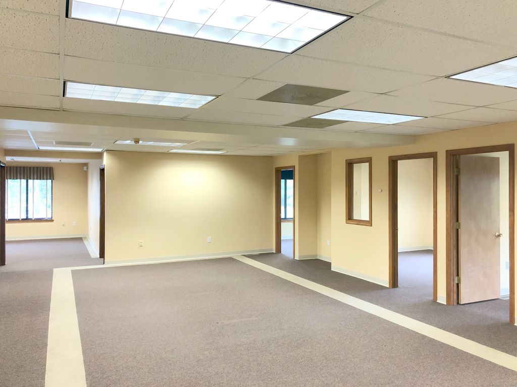 Excellent office suite featuring private offices surrounding an open office area. First floor location. Convenient to highway and restaurants.