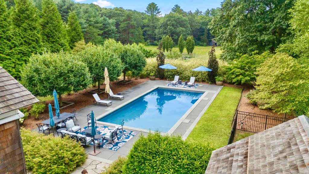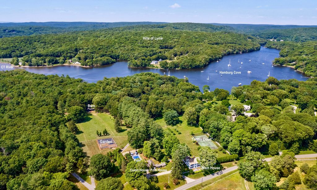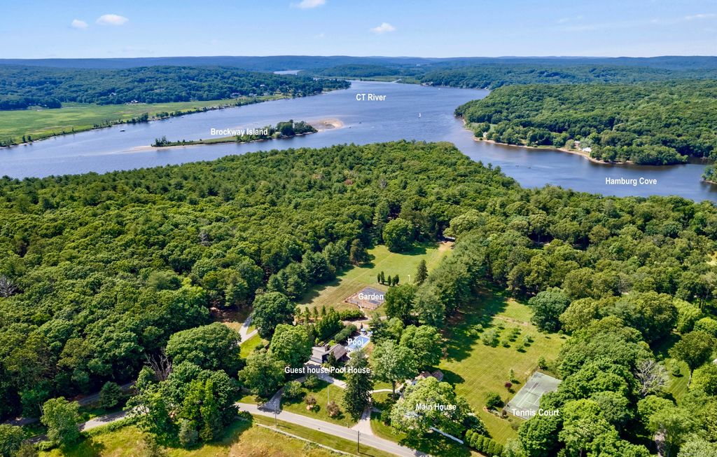 Available for only the third time in 100 years this much-admired country Estate c.1750 on one of the most beautiful roads in Lyme, CT. Often photographed & featured in paintings, you will know this home & location is something special. Featuring a large historic main house, a beautiful guest house/pool house, gunite pool, tennis court, gardens, stone walls, all sited on 8.87 glorious acres. Plenty of room for family & friends, this is the ideal property to spend long lazy days dining on the stone terrace, soaking in the saltwater pool, playing tennis, & walking to the CT River. The perfect blend of the warm & inviting character of an antique home with all the modern systems & conveniences of today. The main house has 5 bedrooms ensuite, a light & bright kitchen, spacious open dining room, living room & library all showcasing fireplaces off the central chimney. At the back of the main house is a large family room with full bath which could also be the perfect spot for a 1st floor primary bedroom or in-law suite. The guest house/pool house is really something special! Artfully curated with a spacious entertaining space, stone fireplace, kitchen, full bath & opening to the pool, & stone terrace. The upper level is warm & inviting with a second stone fireplace, full bath, 2 sleeping nooks & office space. A 3-car garage completes this incredible guest house. Ely Ferry Road is bordered on 3 sides by Lord Creek, the CT River and Hamburg Cove. Equal distance between NYC & Boston