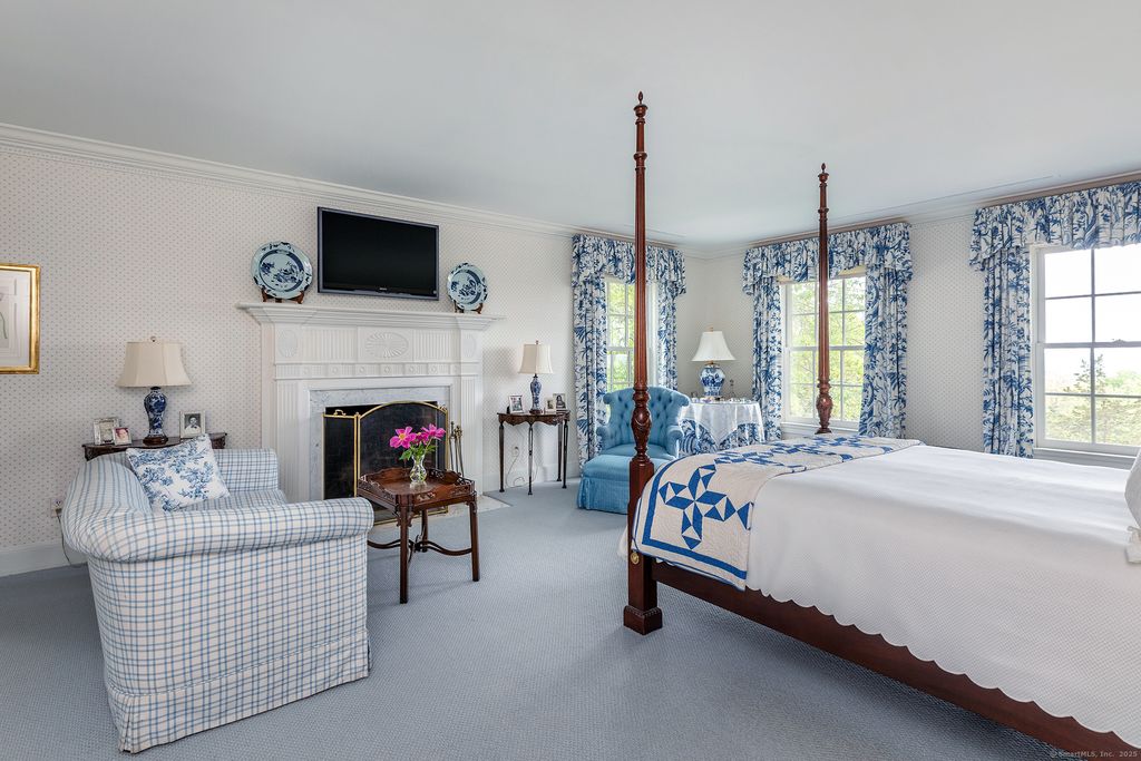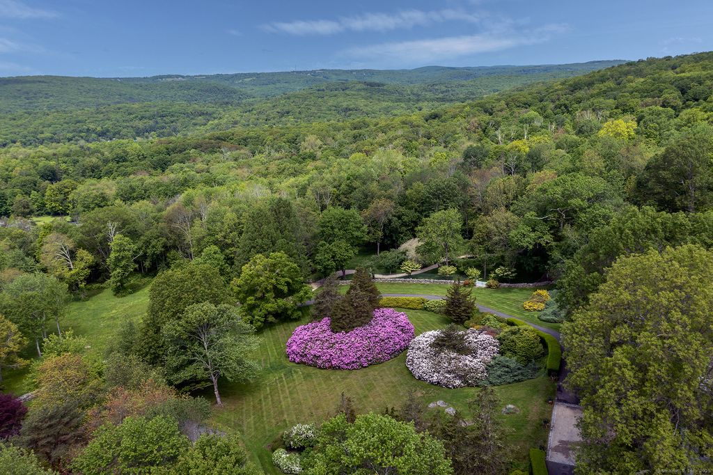 Privately Sited on a Hill in the Midst of 31+ acres, this Elegantly Renovated 5,000+ sq ft Colonial Offers Panoramic Sunset Views and Exceptional Privacy. Graciously Proportioned Rooms Populate the Main Level & Include: a Vaulted-Ceiling Living Room with Fireplace, Paneled Library, Inviting Family Room, and a Spacious Eat-in Kitchen with Top-tier Appliances. The Refined Primary Suite Features a Fireplace, ModernLuxury Bath, and Dressing Room. A Separate 1-Bedroom Apartment Adds Versatility. Outdoors, Discover A Heated Gunite Pool Surrounded by Mature Award-Winning Gardens. Large Stone Terraces & a Meandering Garden Path Add a Texture to this Layered Property. 3-Car Over-sized Attached Garage. Only Minutes from Roxbury, Washington Depot, and Historic Woodbury CT. First Time on the Market in Over 35 Years