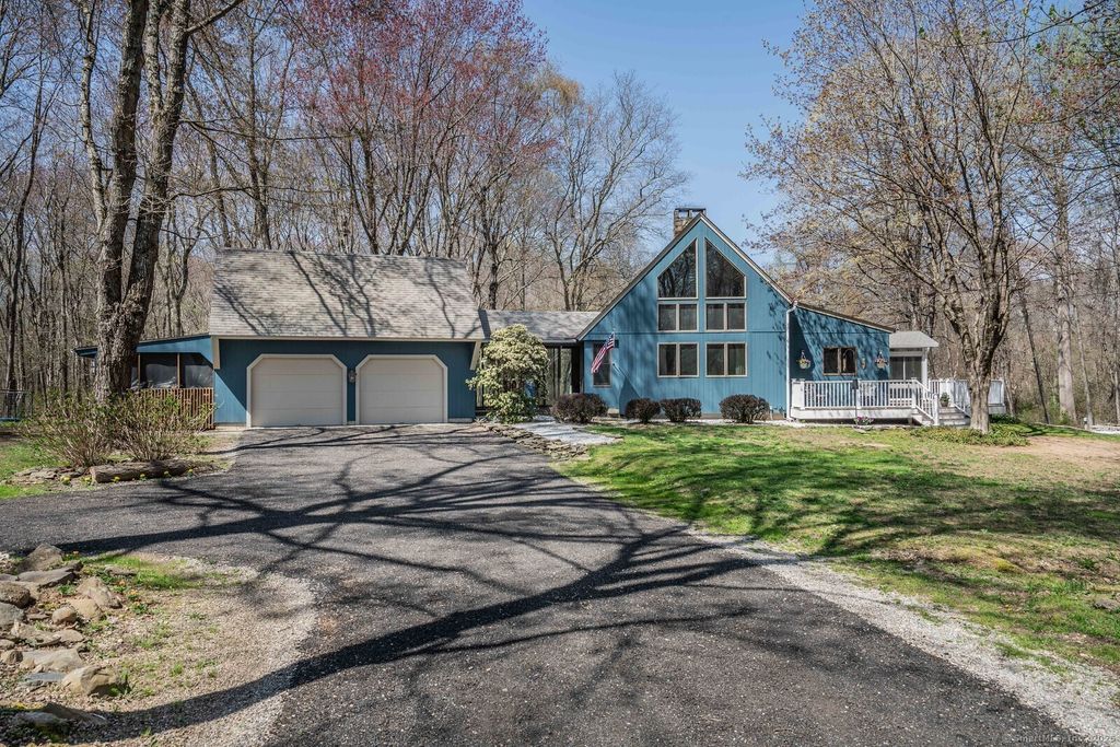 Rustic, Distinctive, and Inviting this A Frame post and beam home offers a unique gently sloping 2.21-acre lot with horse or farm potential. The gravel and paved circular drive welcomes you into the spacious custom breezeway. The grand living room with cathedral ceiling has abundant windows, beautiful field stone granite FP that enhances the open floor plan. The adjacent open design pass thru kitchen maximizes the flow of entertainment. An L-Shaped island with adjacent wine bar touts ample counter space to satisfy your cook. The built-in bench complements both the kitchen and prepares for the outdoors. The built-in home office, shelving, drawers keeps all important documents accessible. The upper floor master bedroom features skylights, a full wall of closets & adjacent to a Jacuzzi bath. The main level has 2 bedrooms, one with custom bunkbeds and a remodeled custom tile shower bathroom with barn door. The barn, carport, RV/Boat pad, have electricity along with an above ground pool area. Fully finished Basement Systems waterproofed, gutter guards, mini split A/C, well pump & holding tank, exterior stain, 4 seasons room hot tub.