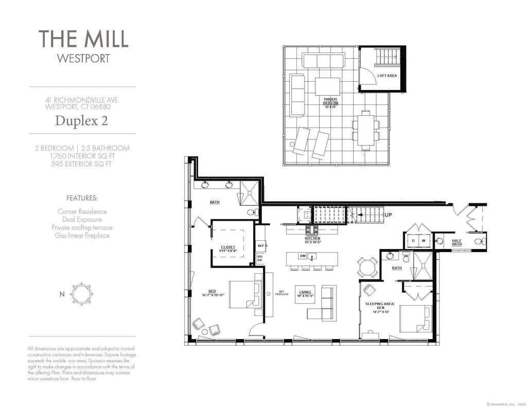Welcome to Residence Duplex 2 at The Mill Westport, a spectacular unit with spacious rooftop deck which offers high-end luxury living with all the amenities of a fine custom home in the heart of downtown Westport. With a concierge on-site and approximately 10,000 square feet of spectacular interior and exterior amenity spaces such as The Great Room & Cafe, Pool, Health & Wellness Center, Patio & Rooftop Deck, residents will enjoy carefree, 5-star living. The 31 residences feature large windows, open floor plans, and light wood floors. Their refined details include a large waterfall-edged kitchen island, linear gas fireplaces, Sub Zero and Wolf appliances, full-size washer/dryers, and up-to-date bathrooms with radiant heated master bath floors. A variety of floor plans are available to meet the unique needs of discerning buyers seeking a bespoke lifestyle, with some offering spectacular terraces. All homeowners have access to heated or covered parking. Set in a tranquil, residential neighborhood within walking distance of downtown Westport's many shops, restaurants, activities and close to beaches and commuting options to New York City. The redevelopment and adaptation of The Mill Westport into a luxurious residential property is being undertaken by Coastal Luxury Homes and Gault Family Companies, two Westport-based firms with a proven track record of surpassing the highest expectations.