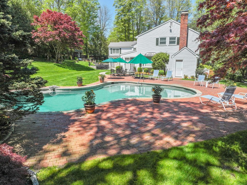 This gracious country estate's idyllic setting is the perfect backdrop for large family gatherings & joyous celebrations. For over 40 years, the Rosenthal family has cherished this sprawling sanctuary, creating a legacy of warmth & hospitality that is unmatched. Now the doors are open for a new owner to create timeless memories - whether poolside; sitting by the outdoor fireplace; cooking in the al fresco kitchen; or retreating inside this home's exquisitely refined living spaces. Designed with unwavering attention to detail, this home's sophisticated interior is a testament to timeless elegance, & features 6 bedrooms, 6 full & 2 half baths. Each space has been thoughtfully appointed to accommodate both large-scale events & intimate family moments. The heart of this one of a kind home is not just one, but THREE kitchens - the primary family kitchen, a full-scale catering kitchen, plus the outdoor kitchen. With elegant formal living & dining rooms, plus grand family room complete with full bar, this unique property is always ready for entertaining. Step outside to the most enchanting outdoor oasis showcasing the free form gunite pool with expansive brick terrace, plus full pool bath. The crowning jewel of the property is a magnificent 30' x 40' slate patio, complete with an event tent. Whether it's intimate soirees or grand formal events, this space is perfectly sited to capture panoramic vistas of the property's mature flowering trees, stone walls, & perennial gardens.