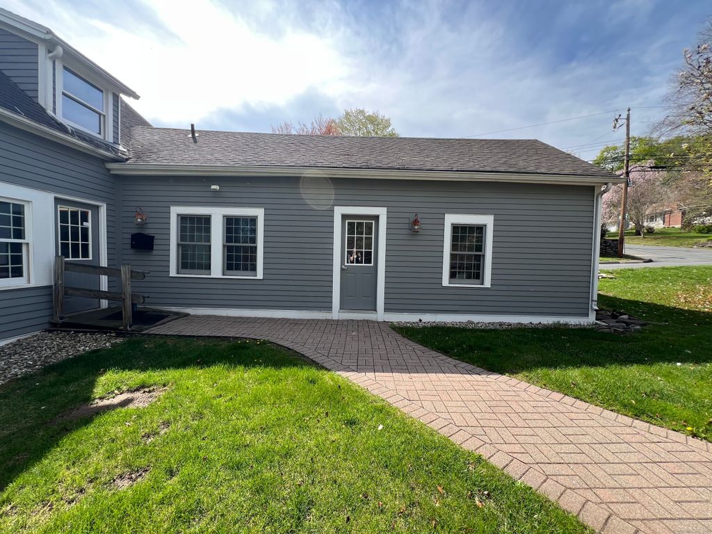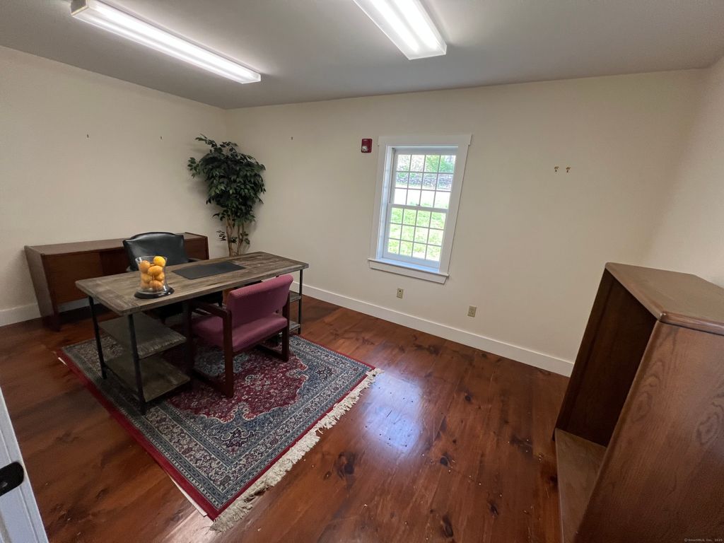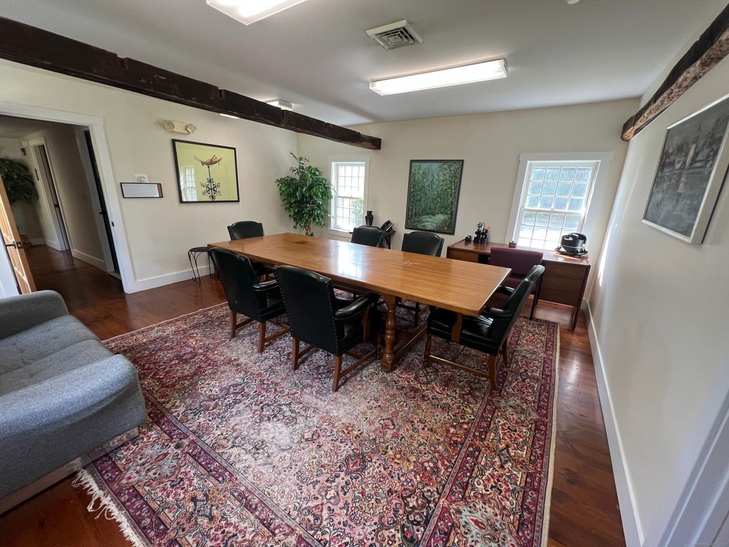 Professional office space situated on the first floor, this 430-sf unit features two bright private offices with their own direct entrance, shared bathroom, complete with ramp access from the parking lot. This space is filled with natural light, stunning exposed original beams and highlighted by high ceilings. The lease covers heating, cooling, electricity, refuse collection, exterior maintenance, and snow removal so you can focus on your business without the extra hassle. Tenant is responsible for routine cleaning of the unit, insurance and internet. Highly visible to Route 44 is a signage space, making this a great opportunity to elevate your business in a standout location.