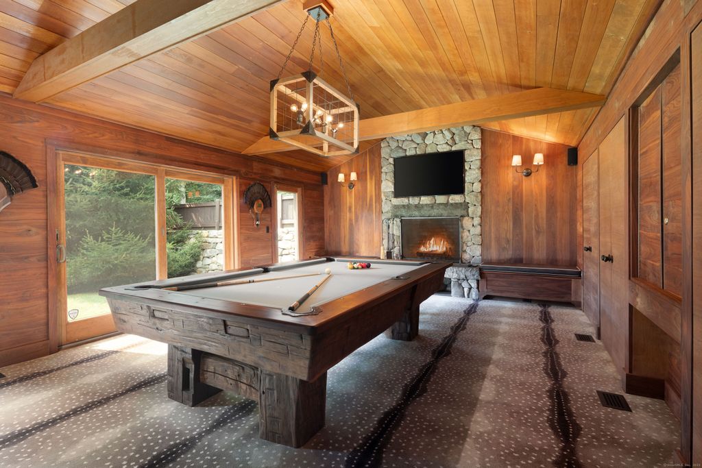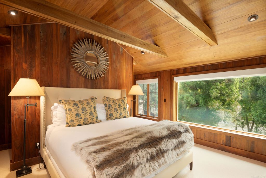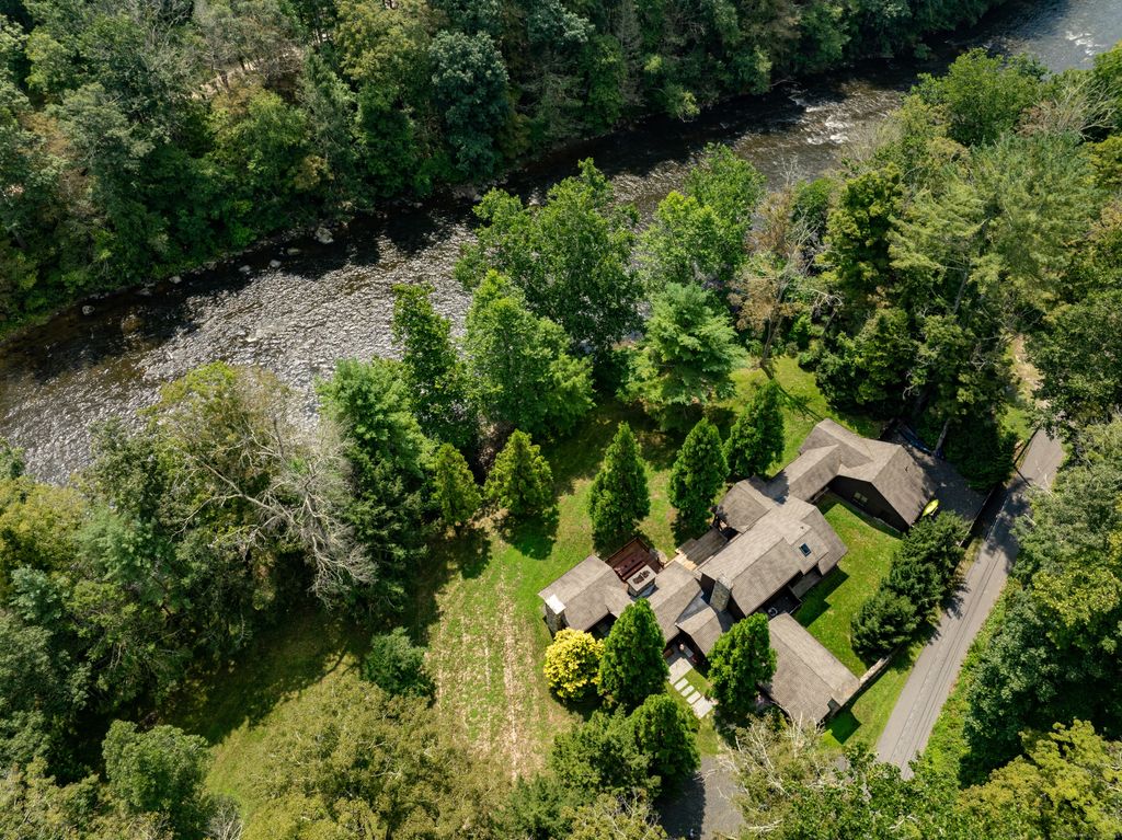 Welcome to "River Bend," a private oasis nestled along the picturesque Housatonic River. This fully renovated property provides a perfect blend of comfort, luxury, and natural beauty. Rebuilt from the ground up with meticulous attention to detail, the home showcases oak flooring, updated fixtures, and vaulted or elevated ceilings in every room, creating a warm and spacious atmosphere throughout. The heart of the home is a cook's kitchen, ideal for culinary enthusiasts and perfect for entertaining. A Den could be a second living or work space. Three stone/granite fireplaces add character and warmth to the living spaces. The pool table and dart board bring about friendly competition. The entire second floor is devoted to a large primary suite, featuring vaulted ceilings and an attached full bath with oversized windows that frame tranquil river views. Just a few steps down an elevated covered breezeway, you'll find a detached guest room with a large bedroom, vaulted ceilings and a private bath, offering versatile space for visitors or a home office. The property also boasts a detached barn, providing additional storage or workspace. Outdoor living is a dream at RiverBend. Enjoy the quiet hum of the river while relaxing by the stone fire pit or dining al fresco in one of the wonderful outdoor areas. The property is enhanced by stone walls, specimen trees, and a fenced and gated storage area, all of which blend seamlessly with the natural surroundings.