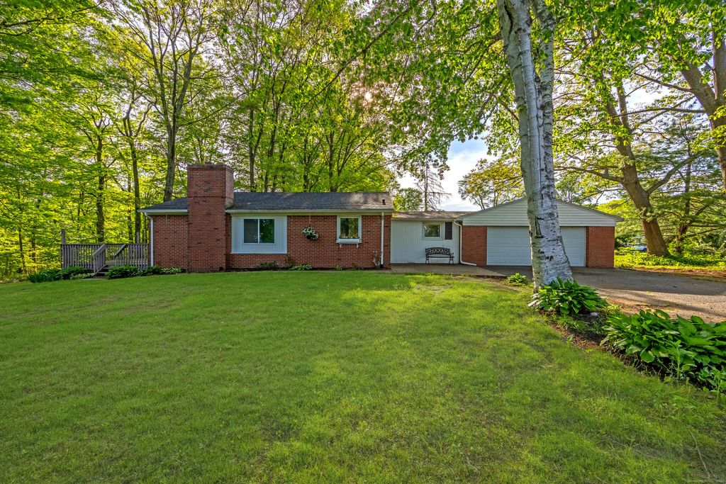 Welcome to 1 Grace Avenue! Potential 4 Bedroom! This beautifully updated ranch-style home offers the perfect blend of charm and modern touches. Step into a spacious living room featuring a stunning stone wood-burning fireplace - the ideal spot to relax or entertain. The bright, inviting kitchen boasts crisp white cabinetry, butcher block countertops, and classic subway tile backsplash, creating a timeless yet trendy look. New vinyl flooring runs throughout the home, adding durability and style. The partially finished lower level adds additional space for another bedroom, playroom or home office. Outside, enjoy summer days in your private, level backyard - perfect for gatherings, gardening, or quiet mornings. Schedule your showing today!