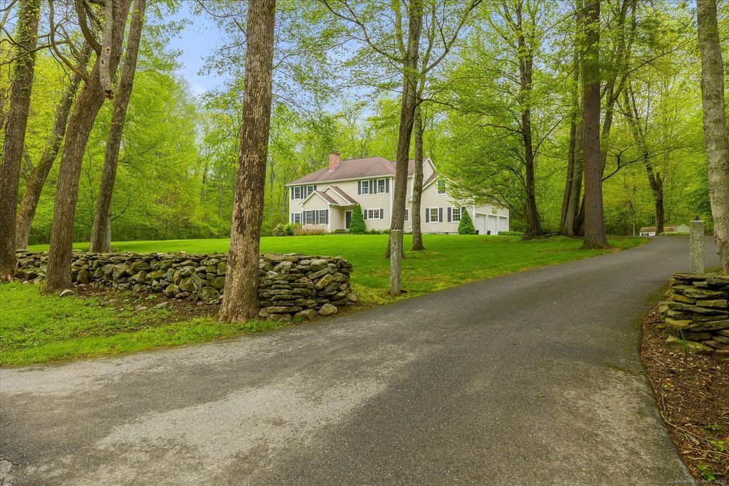 133 Calkins Road, Woodstock, offers a unique blend of classic charm and modern updates. This 3-bedroom, 2.5-bathroom home sits on a picturesque 2.14-acre lot, providing ample space for outdoor enjoyment. The exterior presents a traditional colonial style, while the interior reveals a custom design that sets it apart from typical homes in the area. The property's meticulous landscaping is immediately apparent, with park-like grounds ideal for relaxation or recreation. Inside, the home's distinctive character is evident from the moment you enter. The kitchen features abundant cabinetry and counter space, flowing seamlessly into a dining area and a spacious family room, perfect for both casual gatherings and comfortable evenings of television viewing. A den with a fireplace adds to the lower level's appeal, offering a cozy retreat. A dedicated office space provides a quiet area for work or study. The convenience of first-floor laundry enhances the home's practicality. Upstairs, the primary suite boasts an updated shower stall and an oversized walk-in closet, Two additional good size bedrooms finish. The attached three-car garage features a newly installed epoxy floor, ensuring durability and easy maintenance. The home's overall condition reflects the pride of ownership, with numerous upgrades and a thoughtful layout. HIGHEST AND BEST BY 6PM SATURDAY MAY 17th.