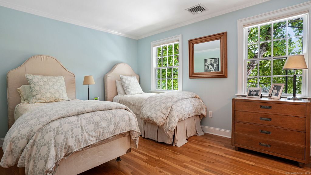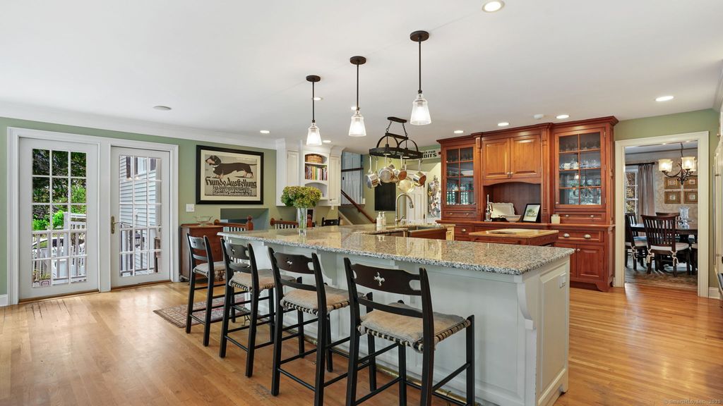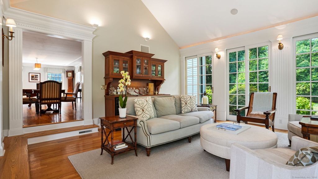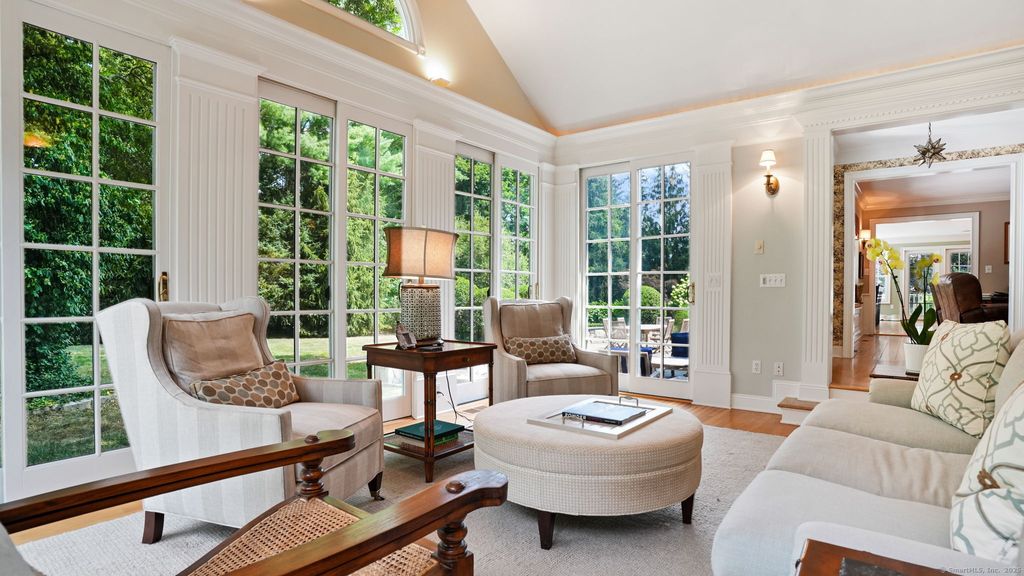 Welcome to 152 Long Lots ~ Perfectly sited on two flat acres in the highly sought after Hoyt Farm neighborhood. This home is a rare blend of timeless design and thoughtful scale. The interior is filled with natural light and symmetry which guides you through elegant, functional spaces designed for both everyday living and entertaining. The gourmet kitchen is the heart of the home featuring a wall of windows, top of the line appliances, and the perfect setting for dining in. The primary suite offers a private balcony updated bathroom and shared walk-in closet. The outdoors is equally impressive with a beautiful private patio and mature plantings. Convenient to schools, train, parks and New Canaan town center.
