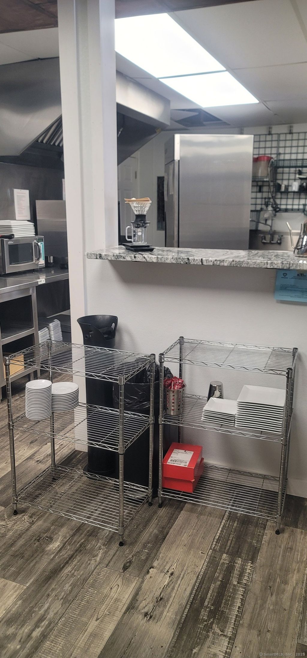 Currently set up as a small restaurant with Ansul system, 3 bay sink, 2 hand sinks, and grease interceptor. Additional equipment available for sale. Recently remodeled with ADA restroom. Owner/Agent