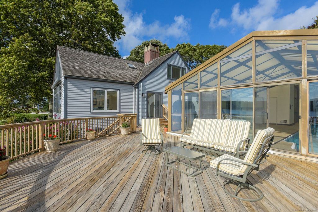 Welcome to 65 Neptune Dr, a 4 BR 4.5 BA house nestled in the sought-after Mumford Cove community- one of Groton's most desirable private beach neighborhoods. This charming property offers the perfect blend of comfort, style and coastal living, with over 160+ feet of direct waterfront. Step inside to the large open floor plan with spacious living areas ideal for both entertaining and relaxing. The open living and dining rooms, with large windows that bring in natural light offering panoramic unobstructed water views and sunsets. The main level foyer has a wood fireplace, bright kitchen with fireplace, all opening up to the great room. First floor BR with full bath, half bath in hallway and primary bedroom suite features an ensuite bath with separate jetted tub. The breezeway from the garage opens up to the in-ground swimming pool and large back deck. Upper level is a bedroom with skylight, water views and what could be a work from home office area. Lower level has laundry, sun room that you can walk right out to the beach to stroll, swim, kayak or just relax and read a book or nap. Bedroom, full bath and a theatre room with club chairs to sit back and enjoy movies from home. Mumford Cove residents enjoy access access to beaches, deep water docks, lagoon docks, playground, tennis/pickleball courts. Property borders open space with biking/walking trails in Haley Farm and Bluff Point.Located just minutes from Mystic dining and shopping. Centrally located between NYC & Boston.