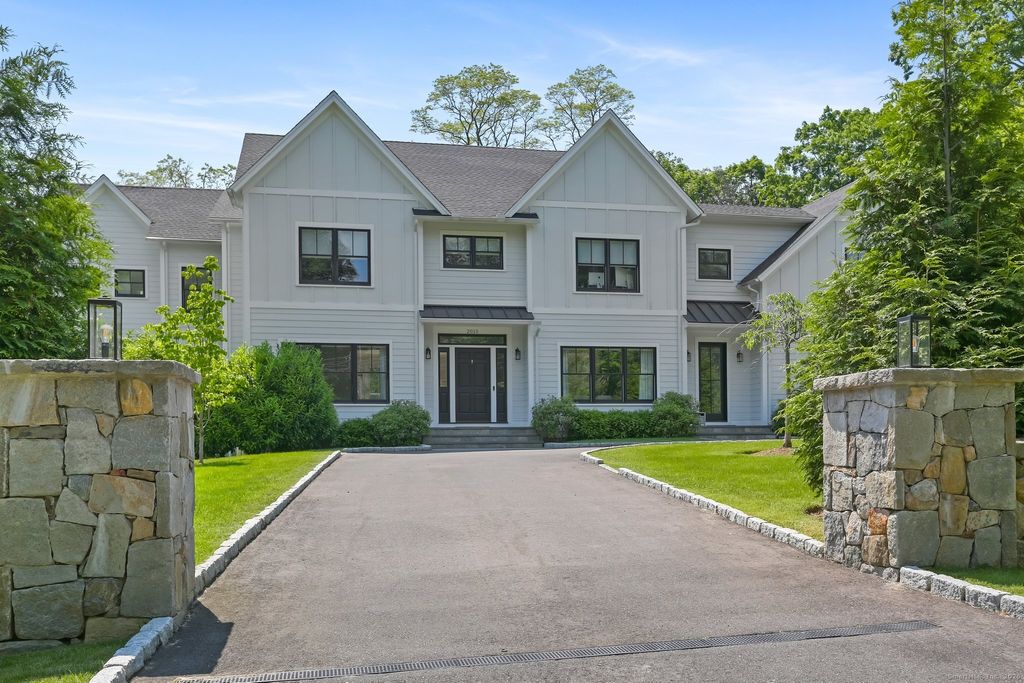 Majestically sited on 2 private acres of professionally landscaped grounds, this exceptional SMART modern farmhouse surpasses new construction standards with uncompromising attention to detail. This 5,500+ SF estate exemplifies architectural integrity with handcrafted millwork and bespoke finishes throughout. Superior craftsmanship shines in every detail-from rich white oak hardwood floors to custom built-in cabinetry and designer elements that create an atmosphere of refined elegance. At the heart of the home lies a spectacular kitchen featuring custom cabinetry, Wolf appliances, an expansive island perfect for entertaining, and stunning quartz countertops. The second level houses 5 generously appointed bedrooms, 4 full baths and 2nd floor laundry. The private Primary retreat complete with a gas fireplace features a spa-inspired bath with heated floors. The walkout lower level offers additional recreational space, including a custom-designed gym for fitness enthusiasts and a full bath that conveniently serves both the lower level and outdoor pool area. Step outside to discover resort-quality amenities, anchored by a saltwater pool surrounded by an elegant bluestone patio. The thoughtfully designed landscape architecture showcases mature specimen trees and carefully curated plantings that frame the residence in natural beauty. This luxury sanctuary represents the perfect synthesis of spacious grounds, complete privacy, and premium amenities-designed for the discerning buyer.