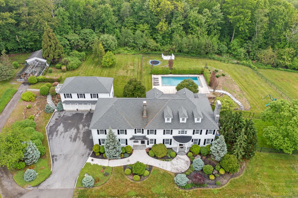 Come see this remarkably private property a stone's throw from the center of Litchfield. This stately home was built in 1992 and boasts over 10,000 s/f of finished space. The grounds are professionally landscaped and have a beautiful patio, pool and greenhouse. There are 8 bedrooms and 13 bathrooms along with a powder room . The sunny , modern, large eat-in kitchen open onto a patio, which then leads to the saltwater pool. A main floor guest bedroom suite with its own bathroom is an added convenience. There are lots of space for grand entertaining in the formal dining room, living room and great room. Plenty of cabinetry and shelves to display your treasures. You can warm yourself by the fireplaces. The master bedroom suite on the upper level has it all, walking closet, fireplace , sunroom and a large bathroom with steam shower and jet tub. 3 additional bedrooms round up the second floor, all with en-suite bathrooms. A separate laundry room is conveniently located on the bedroom level. The 3 floor has a loft and 2 additional bedrooms also with en-suite bathrooms.The lower level is fully finished and is a walk-out to the grounds. It also includes a wine cellar, a gym and a kitchenette. A separate apartement with a patio is located above one of the garage, which house 3 cars. Another garage for 6 cars is an additional outbuilding. Acreage is consisting of 3 separate parcels which are included w/sale.