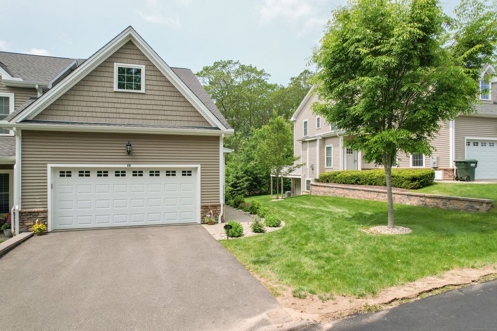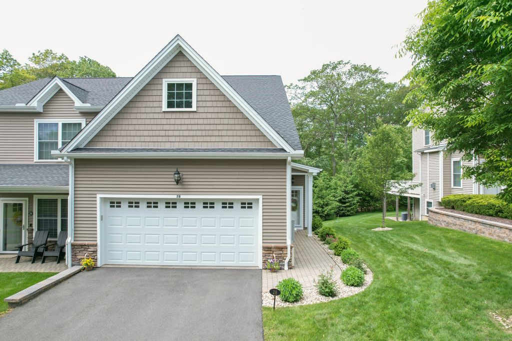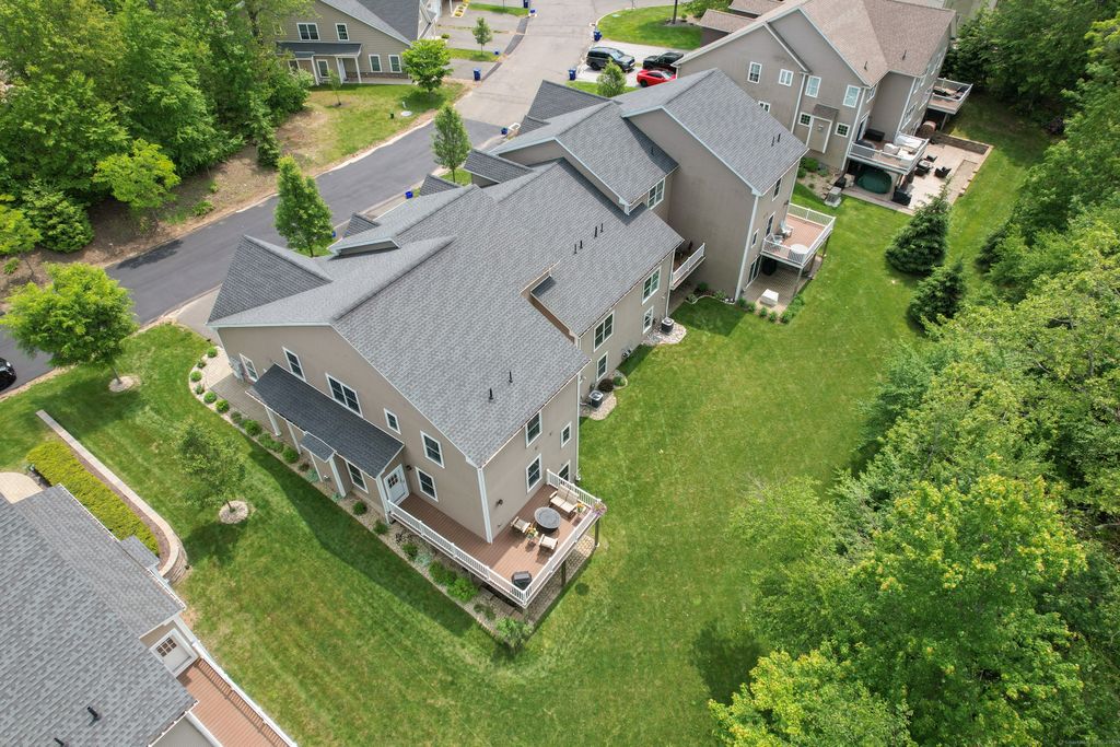 Immaculate 2018-Built Townhouse in Highly Sought-After Saddlebrook Complex. Move right into this like-new, rarely available three-bedroom townhouse featuring a thoughtfully designed open floor plan. The spacious kitchen boasts granite countertops, crown molding, and recessed lighting, flowing seamlessly into a generous living room with a cozy gas fireplace and beautiful hardwood floors throughout. The main level offers a convenient first-floor primary bedroom complete with a full en-suite bathroom and adjacent laundry room, as well as a stylish half bath for guests. Upstairs, you'll find two additional bedrooms with large closets and another full bathroom, perfect for family or guests. Additional highlights include a rare two-car garage, Trex wrap-around deck ideal for outdoor entertaining, and a full walkout basement with 9' ceilings and sliding doors leading to a patio-ready to be finished or used as extra storage. Enjoy the comfort of gas heating and central air, plus the convenience of public water, public sewer, and underground utilities. This is a turnkey opportunity in a prime location-don't miss it!