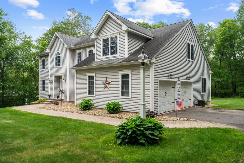Custom-built estate nestled in the scenic hills of the highly sought-after Johnnycake area! Set on a quiet cul-de-sac and backing to preserved land-perfect for hiking, nature walks, and year-round outdoor enjoyment. This meticulously maintained Colonial showcases a grand open foyer, a flexible first-floor layout with potential for a fourth bedroom or home office. Upstairs you will find a stunning primary suite featuring vaulted ceilings, a walk-in closet, and a full bath. There are two additional spacious bedrooms and a large bonus room over the garage-ideal for a playroom, media space, or home gym. The walk-out basement boasts high ceilings and incredible potential for future finishing. Don't miss this rare opportunity to own in one of the area's most desirable locations.