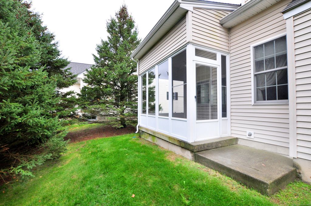 Welcome to the idyllic setting that defines Ballymeade's sought after, active adult community nestled in a breathtaking and tranquil setting. Invite your guests in from the shelter of the covered entryway to this beautiful, two bedroom and two full bath home. An expansive kitchen features an abundance of gorgeous cherry cabinetry and countertop space, stainless steel appliances, recessed lighting, a dine-in area and hardwood flooring. Open to one another, the stunning dining room and living room boast gleaming, newly refinished hardwood flooring, crown molding, recessed lighting and a gas log fireplace. Unwind with your favorite novel in the peace of the bright sunroom, featuring tile flooring and a slider to the enclosed 9' x 12' porch where you can relax as you enjoy the beautiful surroundings. At the end of your day, retire to the spacious, first level Primary bedroom suite featuring a private full bath and linen closet. A second full bath completes the first level. Hardwood stairs lead to two unfinished rooms on the second level, perfect for storage and expansion. There is tremendous value in the central air, newer furnace (2020), newly refinished hardwood flooring, 200 amp electrical, nine foot ceilings and the ease of one-level living. Conveniently located near restaurants, shopping, hiking trails, commuter routes and Bradley Int'l Airport. Ballymeade is recognized for its meticulously maintained grounds and outstanding community. Come on...Let's take a look inside!