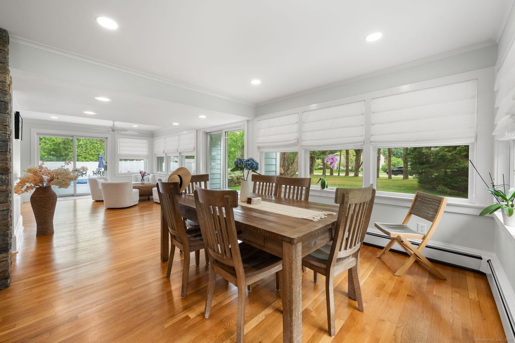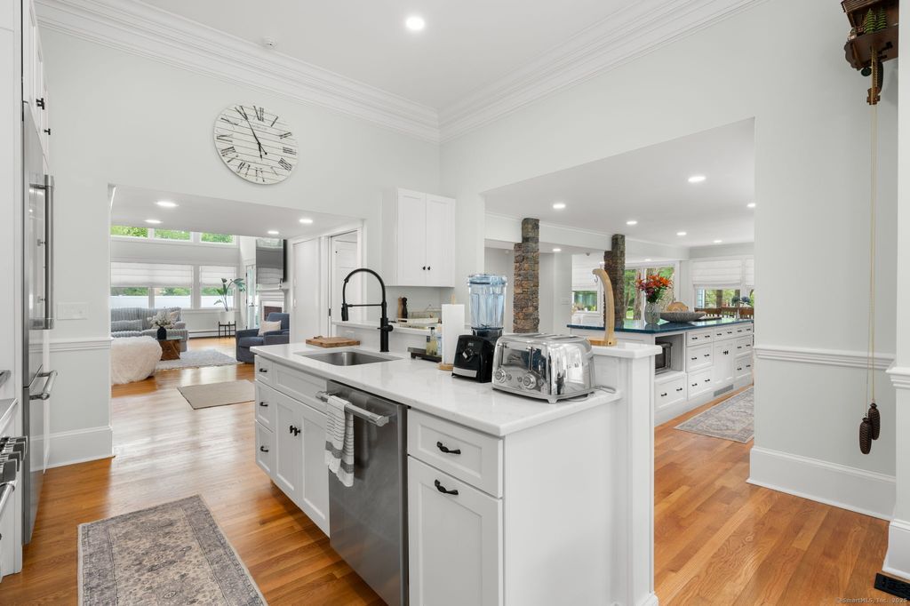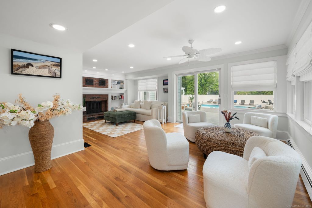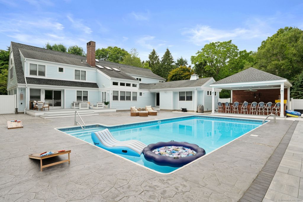 A rare offering just a short walk from the heart of downtown Mystic. Nestled on over an acre of beautifully landscaped grounds, this 4,800+ sq ft residence blends timeless charm with modern comfort, designed for both grand entertaining and relaxed everyday living. This home features an open and airy layout anchored by a sun-filled family room with soaring 12-foot ceilings, built-ins, and a fireplace that creates a warm, inviting ambiance throughout. The kitchen boasts a massive center island, custom cabinetry, quartz counters, and top-of-the-line appliances - ideal for both everyday meals and entertaining on a grand scale. Perfect for multigenerational living or guest accommodations, this home features two spacious primary suites, one located on the first floor and the other upstairs, each with its own luxurious en-suite bath. Multiple living and family rooms provide the perfect balance of space for gathering or retreating, all with rich natural light and tasteful finishes. Step outside into your private resort-style backyard featuring a heated in-ground pool, custom gazebo with a built-in pizza oven, and ample space for outdoor dining, lounging, and play. Set on a quiet street just a short walk to downtown Mystic, enjoy quick access to award-winning restaurants, boutique shopping, and more, all while returning to your private sanctuary at the end of the day. This exceptional property offers the best of both worlds - space, style, and a location that can't be beat.