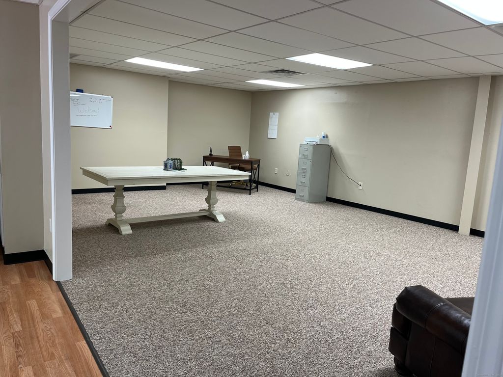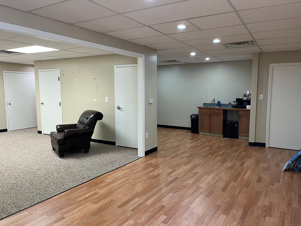 This 1100 Square feet Unit is located in on the Bristol/Plainville line and features Open floor plan with Large work area, private office with French door, Conference area, 1/2 bath, Newer drop ceiling, recently painted, separate Natural Gas heat, Central Air, and hot water heater. Tenant responsible for all utilities, electricity, heating, phone internet access, tenant liability insurance. One month rent, one month's security deposit. Room for signage. Owner prefers 2-3 year lease. Open Parking in upper lot only. Easy Access to Route 72, Routes 9 & 84. No Pets, No smoking in unit. Access to unit is from Wooster Court in Bristol. Located on the Plainville-Bristol town line. No Churches allowed in General Industrial zones.