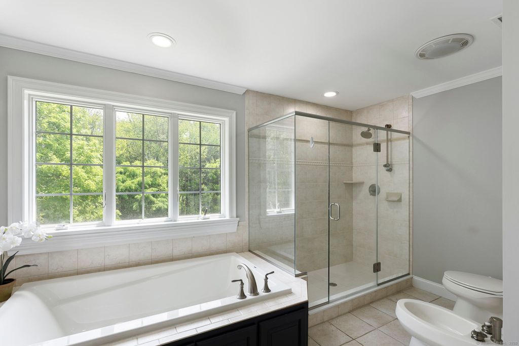 Motivated Sellers! Welcome to this beautifully designed, custom-built Colonial, situated in a highly desirable neighborhood near Westfarms Mall, UConn Health, grocery stores, and sports facilities. A striking two-story foyer, featuring a dramatic Palladian window, fills the entrance with natural light. The main level features an open floor plan with gleaming hardwood floors, high ceilings, and expansive windows. The spacious kitchen boasts granite countertops, a center island, and direct access to the deck, making it an ideal space for indoor-outdoor living. The family room offers a vaulted ceiling, a custom-built entertainment center, and a charming bench seat with hidden storage, perfect for relaxing. A formal dining room and a bright living room with a fireplace complete the main floor. Upstairs, you'll find four generous bedrooms, including a luxurious primary suite with a walk-in shower and a soaking tub. The finished walk-out lower level includes a half bath, second kitchen, and access to a private patio. Additional highlights include two sets of washer/dryers, an efficient propane heating system, on-demand hot water, and an electric car charger. Comfortable, modern, convenient, and full of character-this home is ready to welcome you!
