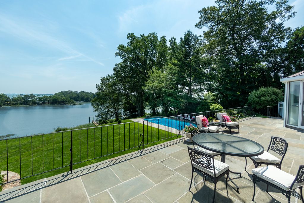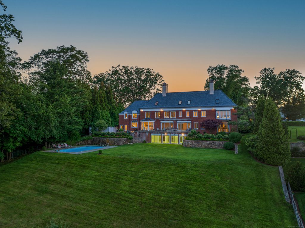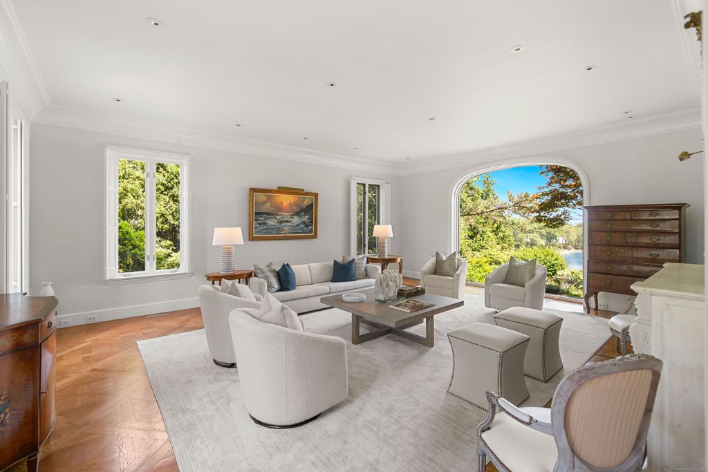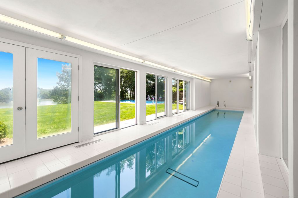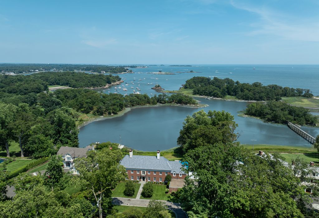 Perched high on the bluff of Long Neck Point, this 6680sf custom-built brick estate offers you unmatched privacy and panoramic water views, all in this captivating natural environment where land and sea converge in harmony. Set on 1.38 acres with 175 feet of shoreline, the home enjoys 180-degree views over Long Island Sound, with main floor rooms capturing the stunning scenery and the ever-changing water. The home opens with a dramatic marble foyer and circular staircase. Graciously scaled rooms feature 9-foot ceilings, an oversized arched window and sliding glass door walls that flood the interiors with light. A long flat backyard, with a 20 X 40 ft concrete pool, slopes gently toward the water, leading to a private dock. The home offers five bedrooms, a luxurious primary suite with its own wing, dual bathrooms and two large walk-in closets. Indoor 38x6 ft lap pool in a separate glass room with sliders to the garden and sea. Separate in-law apartment has a private entrance, kitchen, and sitting room. The lower level has a great room with fireplace, home office with built ins, gym, and a newly renovated pool bathroom and dressing room. Three-car garage, a new slate-style DaVinci roof, new furnace, new A/C units, 45 " Viking cooktop, new oil tanks, full property landscaping and a partially finished attic with cedar closet. This is a rare opportunity to own a truly special waterfront home where every detail was thoughtfully designed to elevate daily living.