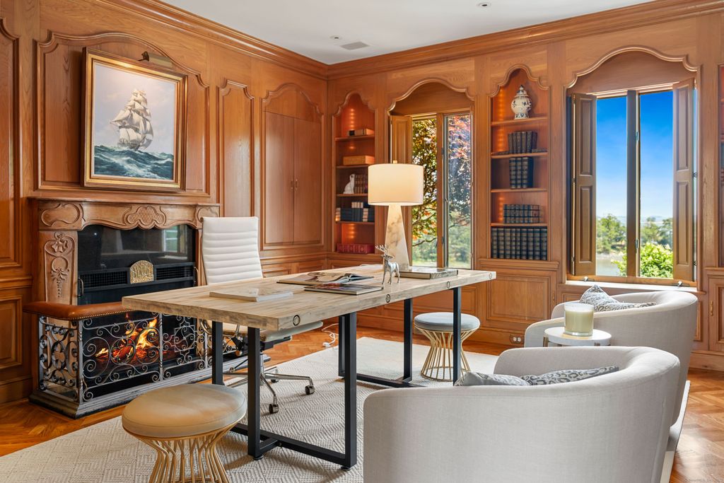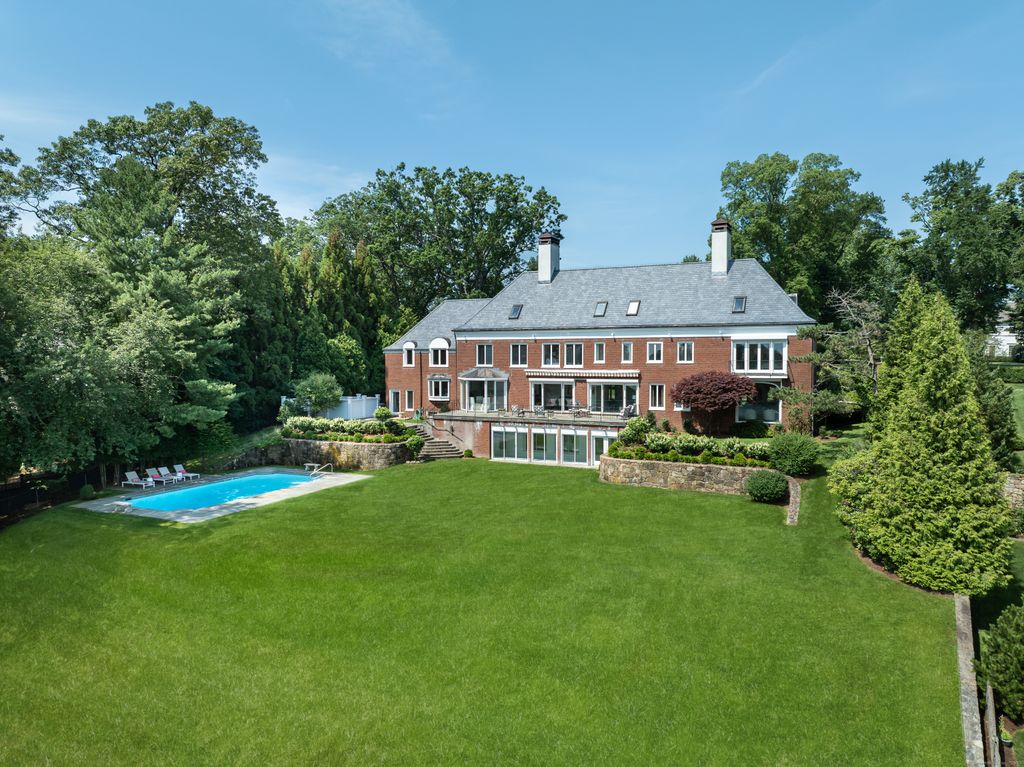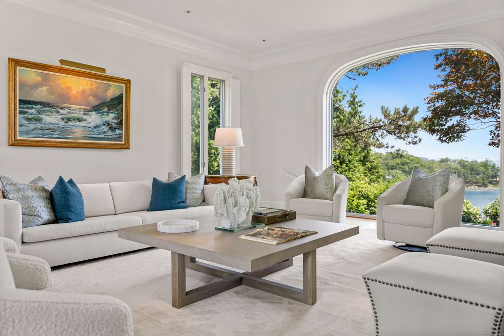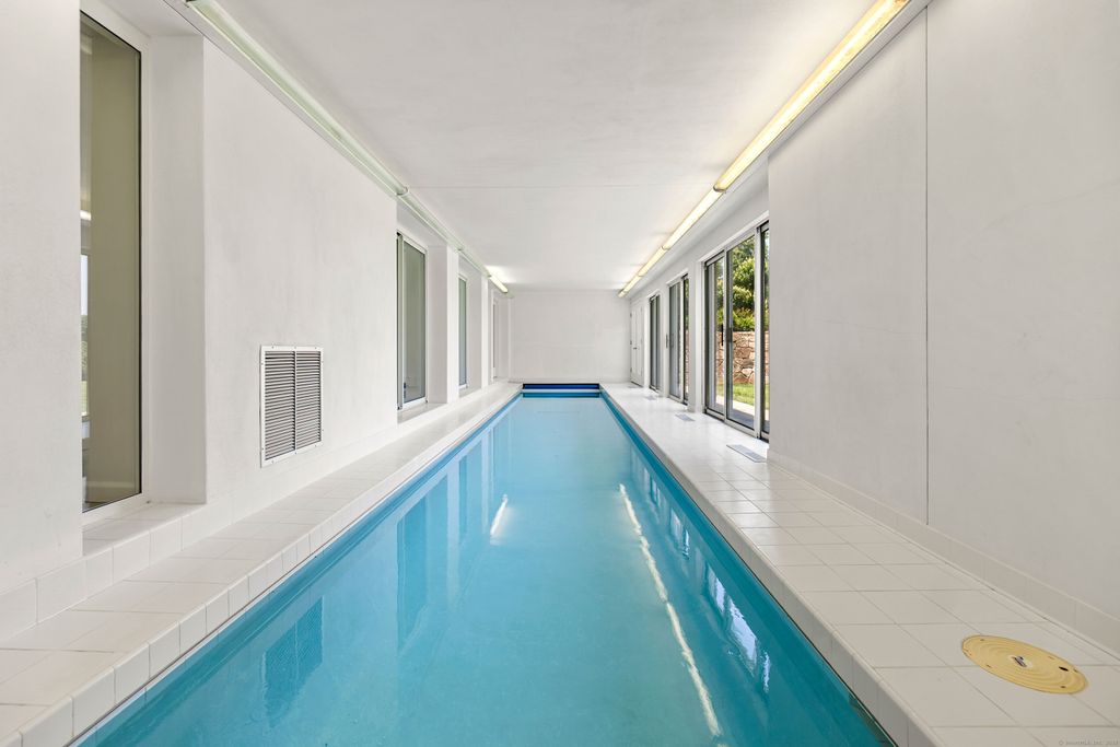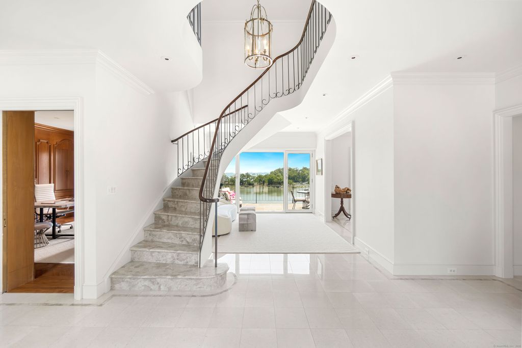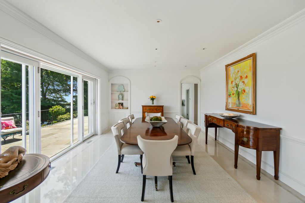 Perched high on the bluff of Long Neck Point, this 6680sf custom-built brick estate offers you unmatched privacy and panoramic water views, all in this captivating natural environment where land and sea converge in harmony. Set on 1.38 acres with 175 feet of shoreline, the home enjoys 180-degree views over Long Island Sound, with main floor rooms capturing the stunning scenery and the ever-changing water. The home opens with a dramatic marble foyer and circular staircase. Graciously scaled rooms feature 9-foot ceilings, an oversized arched window and sliding glass door walls that flood the interiors with light. A long flat backyard, with a 20 X 40 ft concrete pool, slopes gently toward the water, leading to a private dock. The home offers five bedrooms, a luxurious primary suite with its own wing, dual bathrooms and two large walk-in closets. Indoor 38x6 ft lap pool in a separate glass room with sliders to the garden and sea. Separate in-law apartment has a private entrance, kitchen, and sitting room. The lower level has a great room with fireplace, home office with built ins, gym, and a newly renovated pool bathroom and dressing room. Three-car garage, a new slate-style DaVinci roof, new furnace, new A/C units, 45 " Viking cooktop, new oil tanks, full property landscaping and a partially finished attic with cedar closet. This is a rare opportunity to own a truly special waterfront home where every detail was thoughtfully designed to elevate daily living.