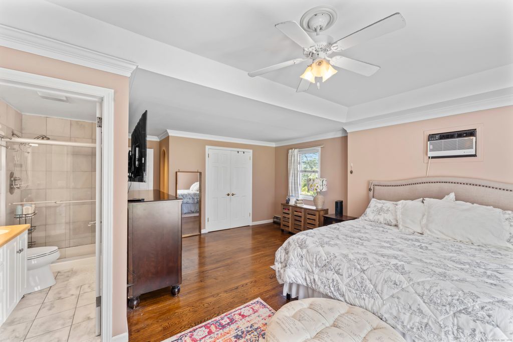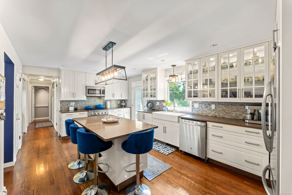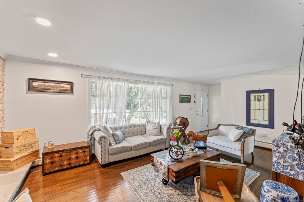 AMAZING DEAL!!! This remarkable ranch-style home has captivating features. Great interior layout, great outdoor space. As you enter, you'll be greeted by a spacious bright living room with fireplace. Updated kitchen, inspiring the chef in you with the new Kutcht professional gas stove and well-designed layout complete with ample cabinets and counter-tops. Adjacent to the kitchen, the dining room opens up to a secluded patio area, providing the perfect ambiance for morning coffee, afternoon tea/cocktails or post-meal conversations. This residence seamlessly blends indoor and outdoor areas perfect for entertaining. Three generously proportioned bedrooms, including an upgraded primary bedroom with an en suite bath. Additionally, an in-law suite awaits, featuring its own dining and living spaces, a bedroom, and a full bath. Enjoy the convenience of a separate entrance and a delightful three-season porch. Descend to the lower level to discover an additional living area, adding versatility to the home's offerings. New Shed with electricity that owners use as an art studio/workshop. Composite deck, Roof 3 years old, new boiler and water heater, Every aspect of this property is poised to accommodate the needs of its new occupants for many years to come.