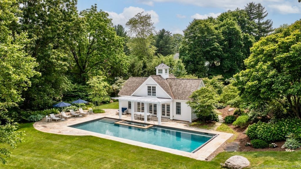Luxury Living on the Fairfield/Westport Border. "Sturges Manor" is an exceptional 6-bedroom, 8-bath estate that offers a rare combination of privacy, elegance, and resort-style amenities - just minutes from the Post Road and 50 miles from NYC. Enjoy multiple town centers and restaurants. The house features expansive, sun-filled interiors ideal for everyday living and entertaining. Recently refreshed with new paint and carpeting, the home includes a formal living and dining room, a large eat-in kitchen, and generously sized family spaces throughout. The finished lower level is designed for wellness and fun, with a 6-person sauna, steam shower, and a spacious game/media room. A third-floor flex space offers the perfect spot for a yoga studio, home office, or quiet retreat. The outdoor experience is equally impressive: a heated saltwater pool and spa, tranquil ponds, a cascading waterfall, and lush manicured lawns set the tone for relaxed luxury. Entertain with ease using the fully equipped outdoor kitchen and fire pit, or shoot hoops on your basketball court. Additional highlights include a full gym, wine cellar, elevator servicing all levels, and two separate 3-car garages-ideal for collectors. A pre-paid landscaping contract through 2031 ensures the grounds remain pristine year-round. Close proximity to some the CT's best private and public schools. This is an extraordinary opportunity to enjoy the best of Fairfield County in a setting that feels like a private resort