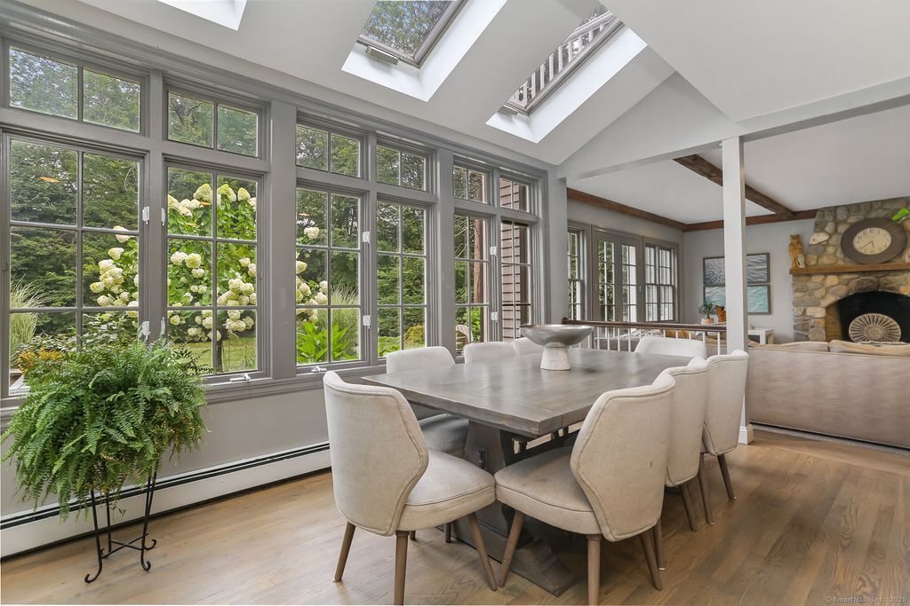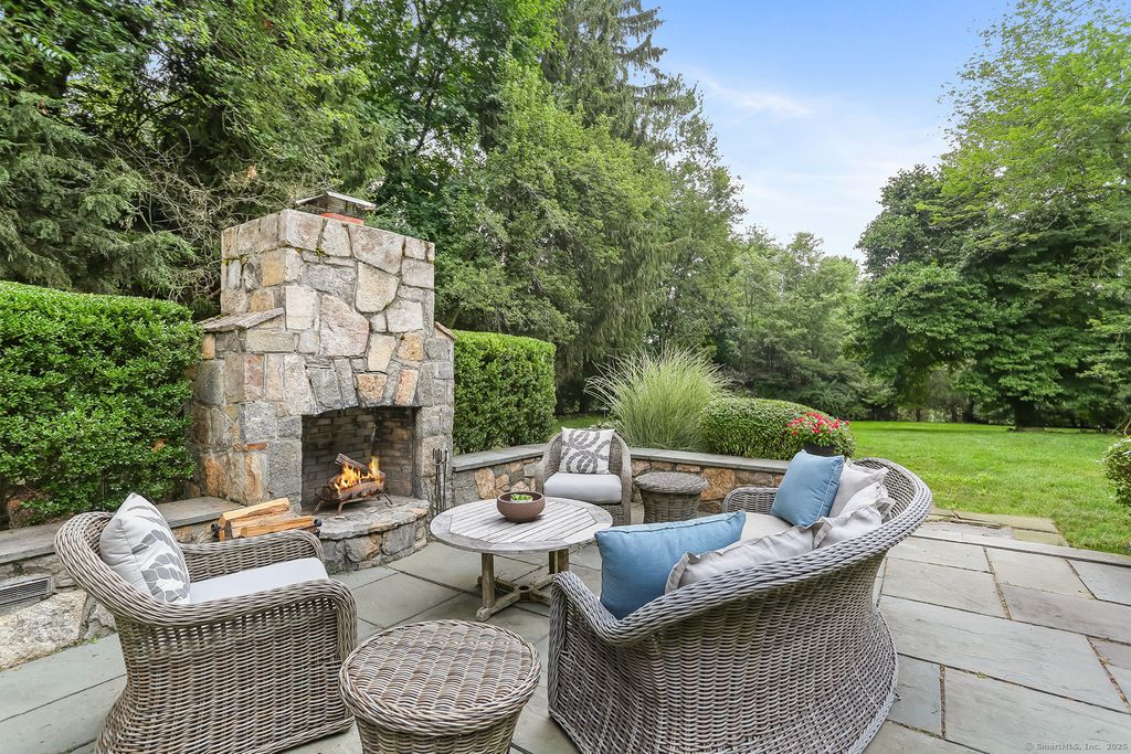 Welcome to this beautifully maintained 1945 stone-front Cape in the heart of Old Hill. Loved by the same family for 22 years, it radiates warmth and character. With 5 bedrooms, 5.5 baths, and two flexible spaces for home offices, it offers comfort and versatility, including a first-floor suite ideal for guests or in-laws. The light-filled kitchen flows into an inviting dining area and cozy sunken family room with a stunning river-rock fireplace-perfect for gatherings or quiet evenings. French doors open to a level backyard with a bluestone terrace, outdoor fireplace, and grilling area, creating an ideal setting for entertaining. A 3-car tandem heated garage, mudroom, pantry, and laundry room add practicality, while a gracious dining room and front-to-back living room with built-ins and a second fireplace set the stage for special occasions. Upstairs, the serene primary suite offers a balcony, spa-inspired bath, and dressing room. Three additional bedroom, 2 additional full baths and a loft provide space for everyone. The finished lower level features a playroom, gym area, full bath, and ample storage with walk-out access to the Garage . Move-in ready with room to personalize, this special home invites you to start your next chapter in one of Westport's most desirable neighborhoods. Don't miss the chance to make it yours!