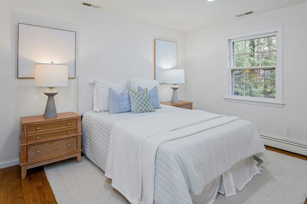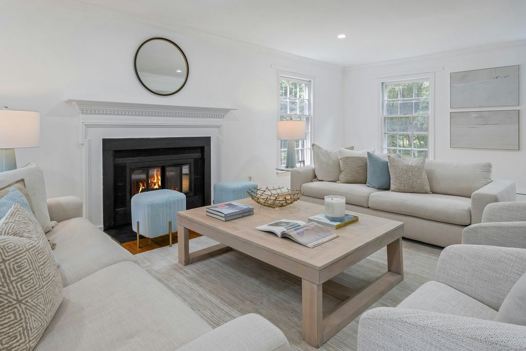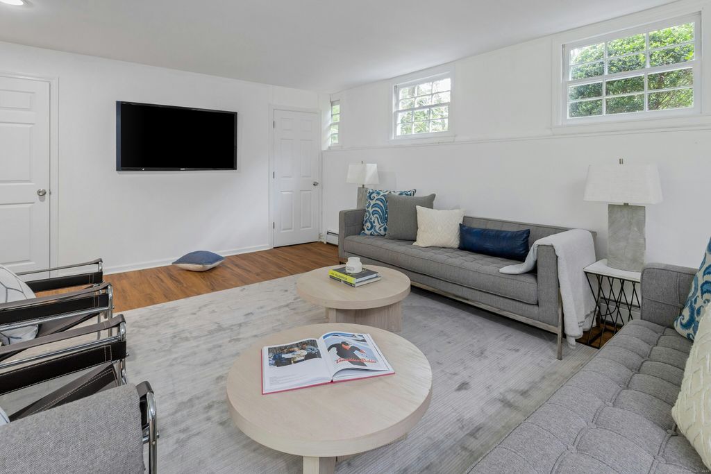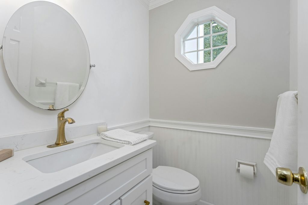Just renovated to perfection, this 5BR, 3.5BA classic Connecticut colonial with extra 1900 square feet of finished lower level gives you over 5300 square feet of living area and is situated on a very private much sought-after cul de sac in New Canaan's loveliest areas of 4+ acres estates and properties. This home has it all. Beautiful quartz countertops in your new light filled family kitchen with custom cabinets and high end appliances, big island and breakfast room which leads through floor to ceiling glass sliders to your deck and connects to your huge family room with fireplace for ultimate gatherings. Upon entering the foyer, you find a lovely formal dining room, comfortable living room and wonderfully designed office with wood floors and bright windows looking onto your magic estate like private property. Newly renovated bathrooms grace 4 large bedrooms and laundry, with primary suite a sitting room (or nursery), walk-in closet, and a spa-like bath. The connecting and private entry in-law suite has a separate staircase with its own exterior entrance leading to a fifth bedroom suite with sitting room. The huge 1900 square feet of newly finished lower level with glass doors walking out to private patio and has a huge playroom/media room and additional lower-level family room. The 2-car attached garage and possible wine room gives entertaining a new meaning. All just minutes to town, train, and schools!