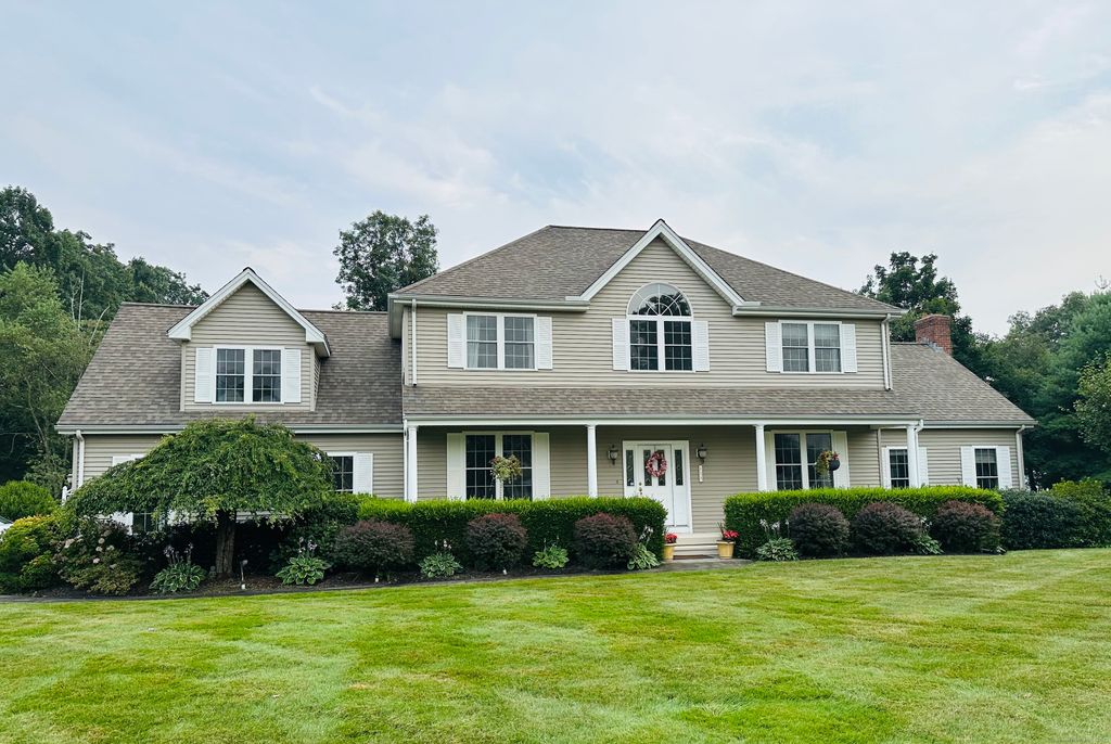 Fall in love with this beautiful contemporary colonial nestled in one of Southington's most sought-after neighborhoods. Come home to a resort-like atmosphere as you enjoy the outdoors on 1.02 acres, private backyard with an inground pool, spacious 2 level deck, gazebo, custom pergola, brick-paved patio, and garden area. This 4 bedroom 2.5 bath built in 2001, has over 3400 sf of living space, which includes 460 sf of partially finished basement. As you enter, you are greeted by a 2 storey foyer with tray ceilings. New hardwood floors in most of the rooms and bedrooms, also in the fireplaced large great room with cathedral ceilings. Take note of the 9 foot ceilings, crown molding/wainscoting on main floor. Formal dining, living room/office, good sized eat-in kitchen. First floor laundry room. Brand new garage doors/openers. Freshly painted garage. Energy efficient 3 zone HVAC system. Pride of ownership is evident even in the landscaping. You will enjoy the breathtaking views of sunsets, rolling hills and watch fireworks displays from your front yard. Too much to list here. A truly must see.