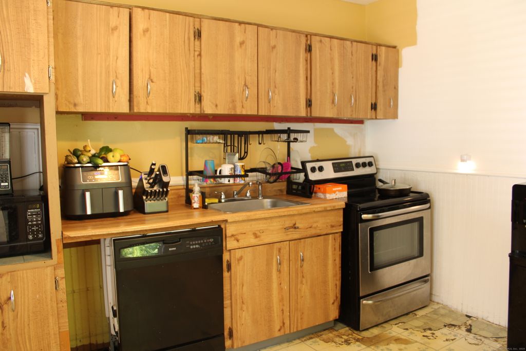 2 family home offers quaint 1 bedroom unit on first floor and 3 bedroom unit on 2nd floor. 2nd floor needs TLC. Spacious yard with deck for 2nd floor and porches for 1st floor. Dirt basement, 1 boiler for whole house. 2 electric hot water heaters.