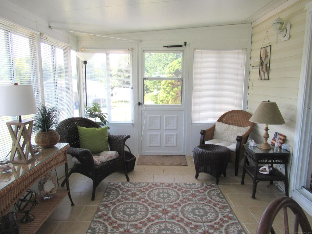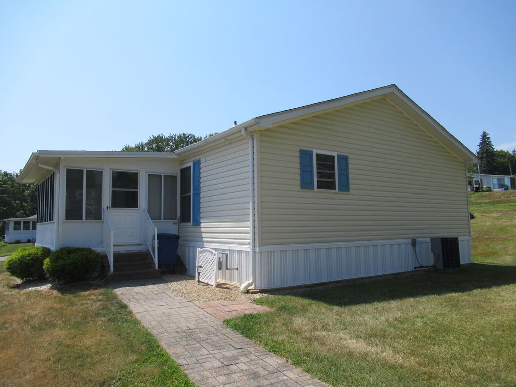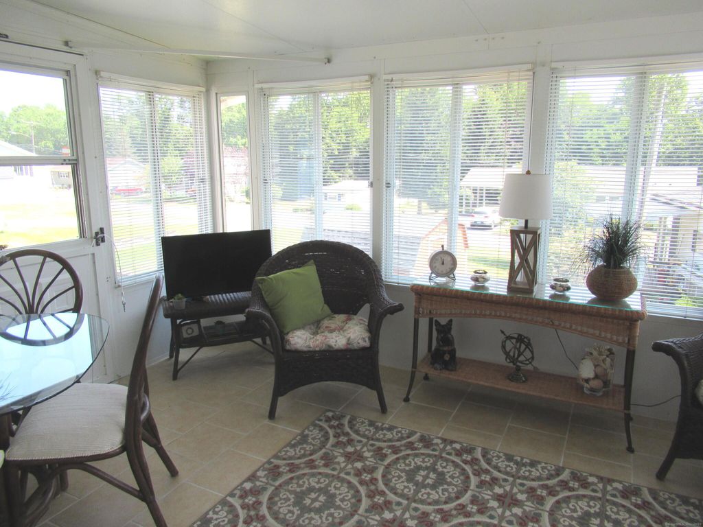 Be Impressed!!!! This is one on the nicest units in this complex. Exceptionally maintained. Fully equipped Kitchen with casual dining area. The Living room and Formal dining open to each other for Holiday gatherings. The main bedroom has it own private full bath. 2nd bedroom or office has easy access to other bathroom. Convenient washer/dryer hookup in hallway. Enjoy nature and 'the birds' sitting in your very relaxing enclosed sunroom. The shed gives you some extra storage space. There's a great covered carport to help protect you from the weather. Nice level yard with space between your neighbors. 2 year old roof. It's a 55+ community with club house, pool, exercise room and more. Approval is required thru the Sun Community.