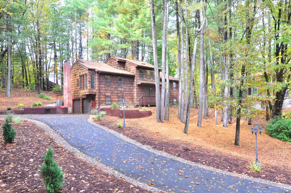 A hidden gem! Discover your own private oasis in this contemporary home that defines privacy and a connection to nature. Step into the breathtaking great room with its soaring vaulted ceilings, hardwood flooring, a gas log fireplace, a wet bar, two skylights that flood the space with natural light and two sliders leading to the sun room. The heart of the home is the updated kitchen boasting oak cabinetry, granite countertops, stainless-steel appliances, hardwood flooring, a tile backsplash, a breakfast bar, a dine-in area, recessed lighting and a pantry. The adjacent dining room, with a wood burning fireplace, hardwood flooring and chair rail molding, is perfect for intimate dinners or festive gatherings. The bright sanctuary of the sun room features a cathedral ceiling, tile flooring, panoramic outdoor views and a slider to the deck. On the main level you'll also find the Primary bedroom, a serene and private retreat, with hardwood flooring, a walk-in closet and a designated full bath with tile flooring. A spacious second bedroom with hardwood flooring and recessed lighting and a beautifully remodeled full bath complete the main level. Ascend to the upper level to a gorgeous loft with hardwood flooring, built-in cabinets and bookshelves and a cathedral ceiling. The expansive (17'x17'), finished lower level is ideal for a recreation room. Enjoy the peaceful tranquility of nature at its best as you relax and unwind on your private deck. Come on...Let's take a look inside!