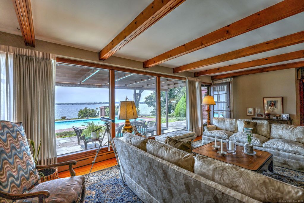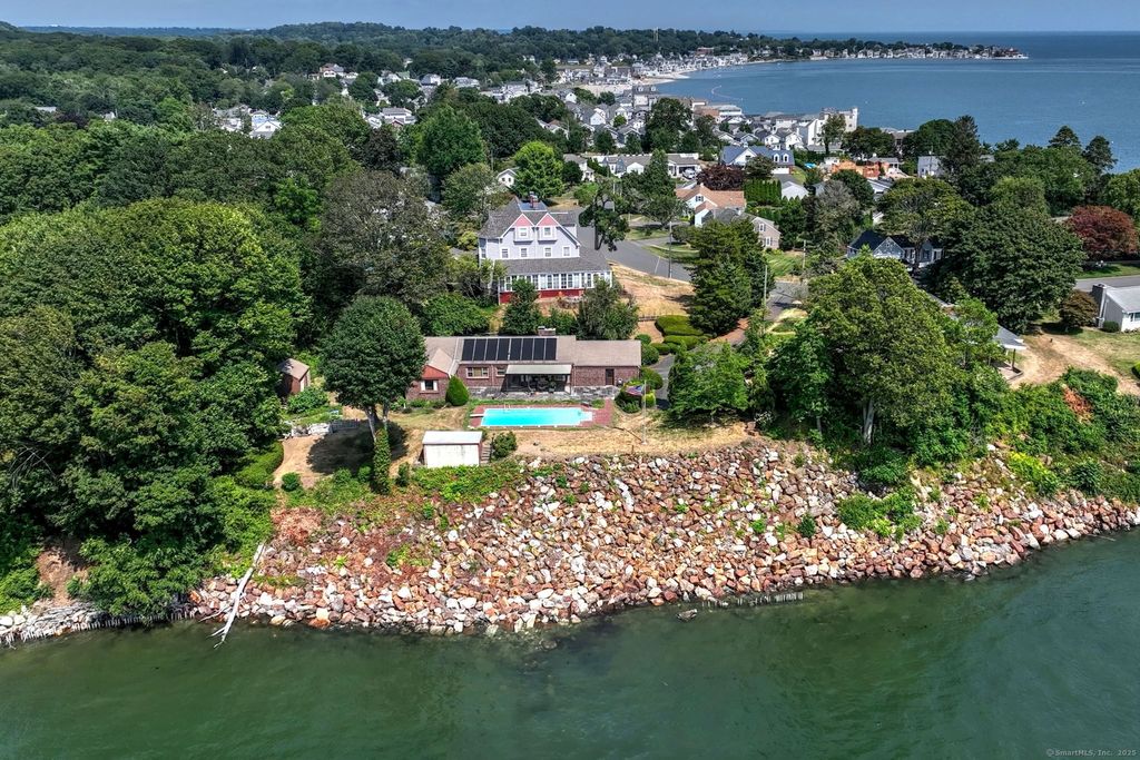 DIRECT WATERFRONT - 183 FEET OF LONG ISLAND SOUND FRONTAGE Experience rare privacy and panoramic views from this exceptional Point Lookout residence in Milford. Perfectly positioned on one of the largest waterfront lots in the area, the property offers unobstructed vistas of Long Island Sound, Charles Island, and the entrance to Milford Harbor. A sweeping waterside lawn sets the stage for summer gatherings, while the heated inground pool-with its own pool/storage shed-is an amenity seldom found on Milford's waterfront. Just steps away, Point Lookout residents also enjoy access to the Point Lookout Association's private sandy beach, complete with kayak racks for coastal adventures. Inside, floor-to-ceiling windows in the living room frame yacht-like water views and create a bright, airy ambiance, complemented by a cozy fireplace. The remodeled kitchen boasts premium cabinetry and appliances, seamlessly opening to the dining and living areas for effortless entertaining. The spacious primary suite is a retreat of its own, featuring breathtaking water views, direct access to the pool and patio, and a luxurious bath that flows into an open-air atrium and private garden. Hardwood floors and original wood paneling throughout much of the home add warmth and timeless character. Additional highlights include a two-car garage, abundant storage, driveway parking for at least five vehicles, and beautifully landscaped garden and patio.