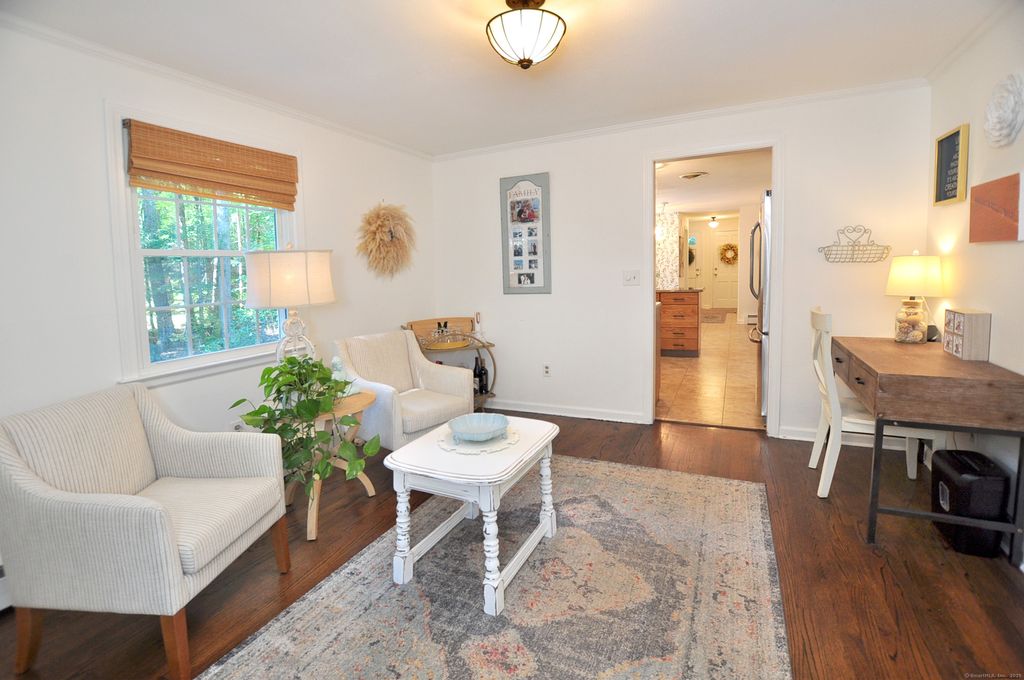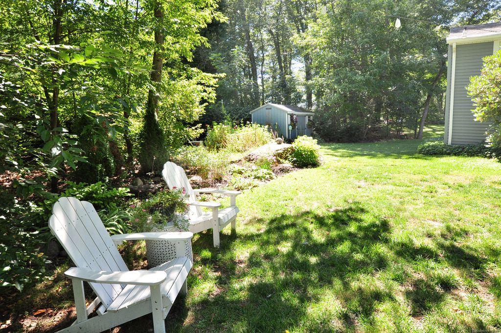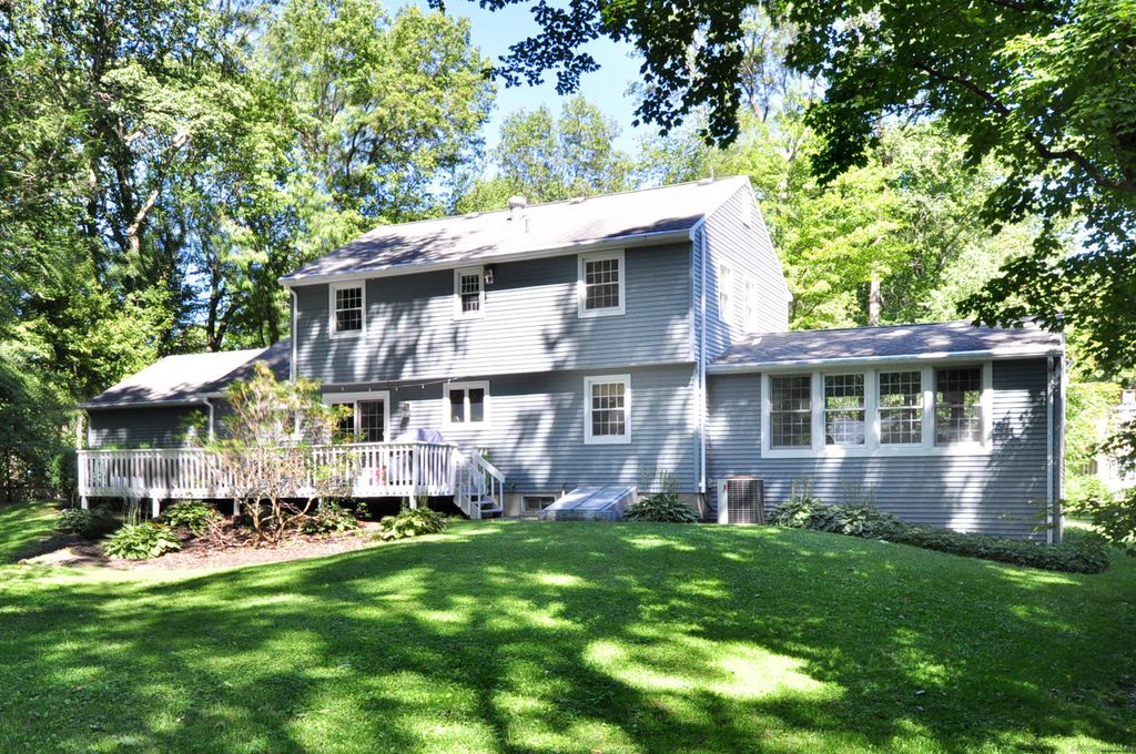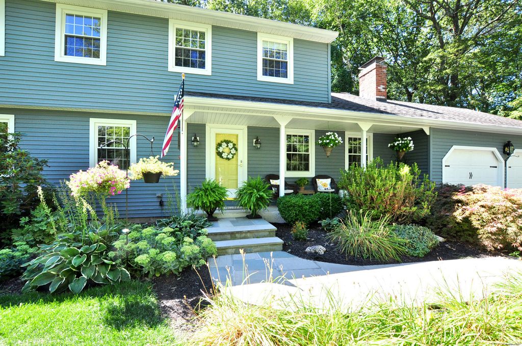 Stunning Colonial with Timeless Curb Appeal. This beautifully maintained Colonial welcomes you with lush, professionally landscaped grounds and timeless curb appeal. A welcoming covered front porch sets the tone for the gracious interior designed for both everyday living and entertaining. The tasteful decorating, spacious and bright home offers an inviting blend of comfort and style. The formal living room features gleaming hardwood floors and a cozy fireplace, while the oversized dining room is perfect for hosting holidays and special gatherings. A large eat-in kitchen boasts granite countertops, SS appliances, and sliders that open to the deck, ideal for enjoying outdoor dining. A small den provides flexible space for a home office or study area. The highlight of the first floor is the expansive family room with vaulted wood-paneled ceilings and beams, creating a warm and dramatic focal point for relaxation and gatherings. Upstairs are 4 generously sized bedrooms, primary with a private full bath, second full hall bath serves the additional 3 bedrooms. The lower level is set up for TV viewing, hanging out and exercising. Enjoy several areas in the expansive yard with beautiful gardens perfect for parties or relaxing in your own private retreat. 2 car attached garage, convenient central location close to shopping, schools, and major routes. This home combines charm, space, and functionality-making it the perfect choice for today's lifestyle. New Septic