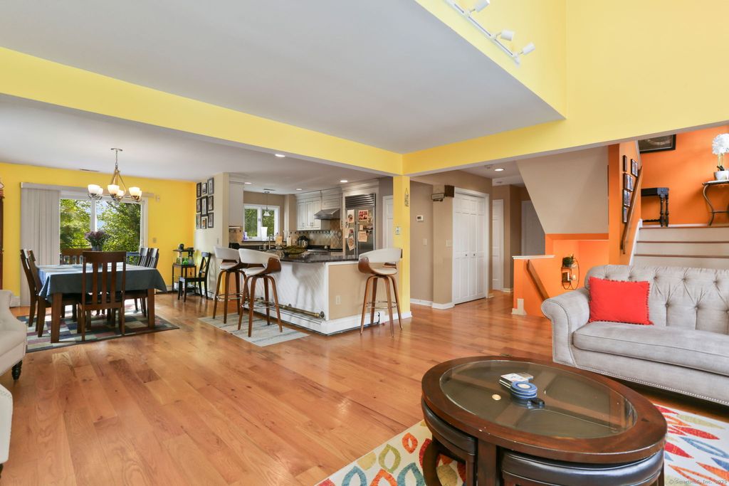 Discover this stylish contemporary home in Westport's highly desired Saugatuck area - just a 7-minute walk to the train station, making it a commuter's dream. Enjoy being steps from Saugatuck Rowing Club, top restaurants, and the town's most vibrant spots. The open-concept main level features recessed lighting, a living room with fireplace, dining area with deck access, and a modern U-shaped kitchen with granite countertops, Wolfe gas stove, Sub-Zero refrigerator, and breakfast bar. Two bedrooms and a guest bath complete this level. Upstairs, the private primary suite includes a full bath, and the fourth bedroom also with full bath. The finished walk-out lower level offers a party prep area, full bath, exercise room, and sliding doors to a private patio and yard. Recent updates include new A/C (2019), bath fixtures, 50-gallon water heater (4 yrs), wine cooler, and a monitored security system. The home has 3 heating zones. It is just 10 minutes to Compo Beach and 7 minutes to downtown and the library. This home blends comfort, convenience, and modern flair - all in one perfect Westport location. Sale subject to sellers obtaining suitable housing.