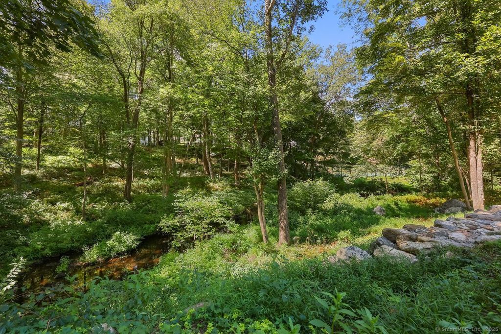 Discover unparalleled elegance at 176 Logan Road, a masterfully reimagined 5-bedroom classic colonial set on over 2.5 acres of private land with serene views to Mill river. This exceptional home boasts two full kitchens for ultimate flexibility especially for multi generational living requirements. In 2023, the expansive walk-out lower level was renovated into a luminous in-law suite, featuring a gourmet kitchen, inviting den with brick fireplace, full bath, large walk-in cedar closet. Walk out your French Doors and down to the brook - perfect for relaxation or gatherings. The owners have infused over $1 million into premium upgrades, documented for peace of mind. Exterior enhancements include a new roof, gutter system, and rebuilt brick chimney for enduring strength. Inside, Marvin Integrity windows flood the space with light, complemented by three exquisitely renovated baths. The primary suite's spa bath indulges with an MTI air tub, radiant floors, and steam shower. A new mudroom offers laundry convenience and a pet shower! The main kitchen captivates with an Ijen Blue quartzite island, 48-inch Wolf range, Sub-Zero fridges, Miele cappuccino maker, soft-close cabinets, and custom designed 5x12 walk in pantry. New Modern systems shine: propane heating, multi-zone AC, 24KW whole-home generator, and Navien instant hot water. Minutes from Scott's Corner and downtown New Canaan, this sanctuary blends luxury, nature, and convenience