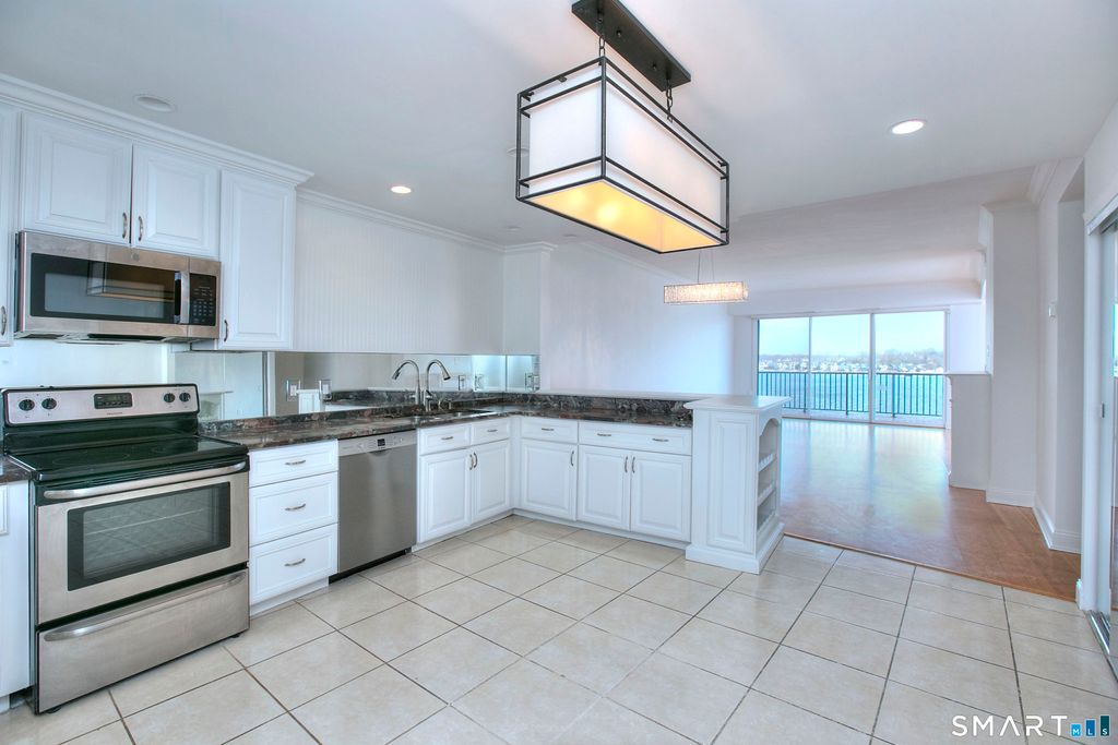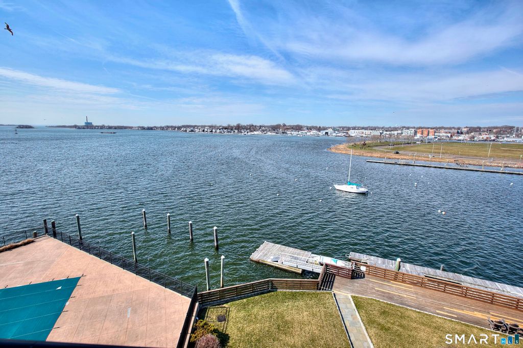 PENTHOUSE LEVEL DIRECT WATERFRONT VIEWS in one of East Norwalk's most coveted waterfront enclaves, this residence offers an exceptional frontrow vantage point over Long Island Sound and the harbor. An expansive balcony becomes your private perch for sweeping water views, glowing sunsets, and cooling summer breezes. Inside, an open kitchen leads to the dining area and through to the incredible living room with a wall of glass to the terrace. An office/den area also has inspiring views. The primary BR suite also has glass doors to the balcony and signature views. A large dressing rm w/ abundant closet space plus en-suite bath adds to the appeal. The 2nd BR has built-ins, good closet space and an accompanying full bath. The lifestyle is enhanced by a waterfront heated pool, marina, promenade, and a gathering room ideal for hosting friends and neighbors. From this location, you can stroll or bike to beaches, train stations, local shops, highly-rated restaurants, the dog park, the SoNo Collection anchored by Bloomingdale's and Nordstrom, and the Maritime Aquarium. Quick access to I95 and the Merritt makes commuting effortless-NYC is just 50 miles away. The secured building includes elevators, a storage room, and a reserved carport space. A rare opportunity to enjoy the best of Fairfield County's coastal lifestyle. This is an exceptional opportunity to enjoy multi-million dollar views and amenities at a popular price point.