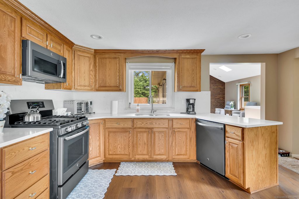 This turn-key home has been meticulously maintained for the past 40+ years by its current owner. The home features 3 bedrooms and 1 bath, along with a large living room area that boasts high ceilings and a brick fireplace. The kitchen, which was recently updated with quartz countertops, flows easily into the dining and living areas making it welcoming and ideal for entertaining. Additional highlights include a partially finished lower level, newer roof (2020), windows recently replaced (July 2025), a generator hookup available on both sides of the house, and updated mechanicals. Every detail reflects the continuous care put into this property, giving peace of mind to the next owners. This home is situated on a 1.15 acre cleared level lot, lined with mature trees. The yard is perfect for outdoor entertaining, a large gardening area, and has the potential for future improvements. The electricity service has been extended in the yard to support the reinstallation of a pool if desired. The potential of this property is endless. Located in a desirable Southington neighborhood, this home offers easy access to schools, parks, shopping, and major highways, making it a wonderful place for the new home owners.