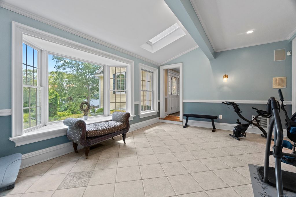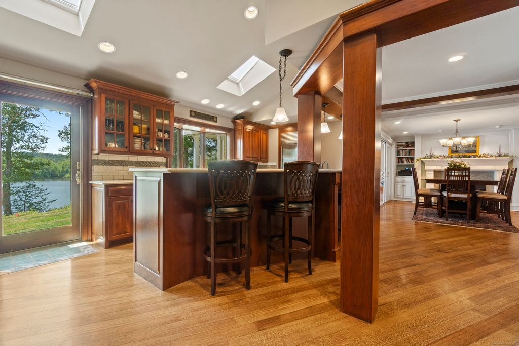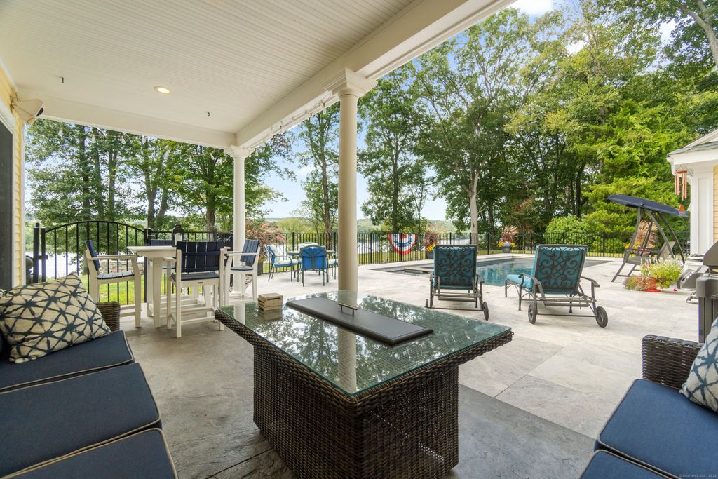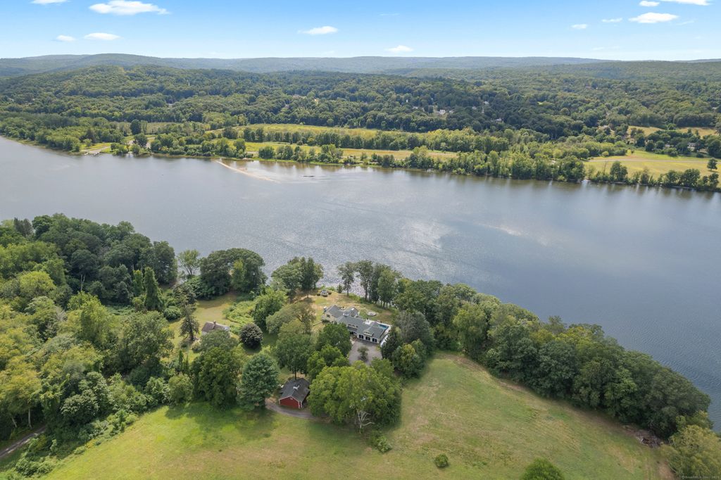 Luxury waterfront estate on the Connecticut River with 2.5+ private acres and 397 feet of river frontage. This 6,300 square foot home was fully rebuilt and expanded in 1999 from an 1851 Post and Beam, offering Four to five bedrooms, four baths, and water views from nearly every room. The chef's kitchen features custom cherry cabinetry, Corian counters, Viking six-burner cooktop, and double ovens. Vaulted ceilings, three Granite fireplaces, and custom millwork in mahogany, cherry, and ash showcase craftsmanship throughout. A mahogany spiral staircase leads to a cupola with stunning views. Modern comforts include heated floors (including garage), new HVAC (2024), 400-amp service, 20KW Generac generator, and Andersen windows and skylights. The oversized three-car garage features cedar finishes, steel beam construction, radiant heat and a fourth garage under the house. Resort-style outdoor living includes a 35-foot heated saltwater pool with spa, auto cover, Travertine patio and an IPE outdoor shower. Mature gardens, a rebuilt historic barn, and a playhouse/shed add character and charm. Ready to use dock with additional plan approval for a boat lift offer direct river access for boating and water sports. Impeccably maintained and move-in ready, this property combines historic character, modern luxury, and unmatched waterfront living. A rare opportunity on the Connecticut River.